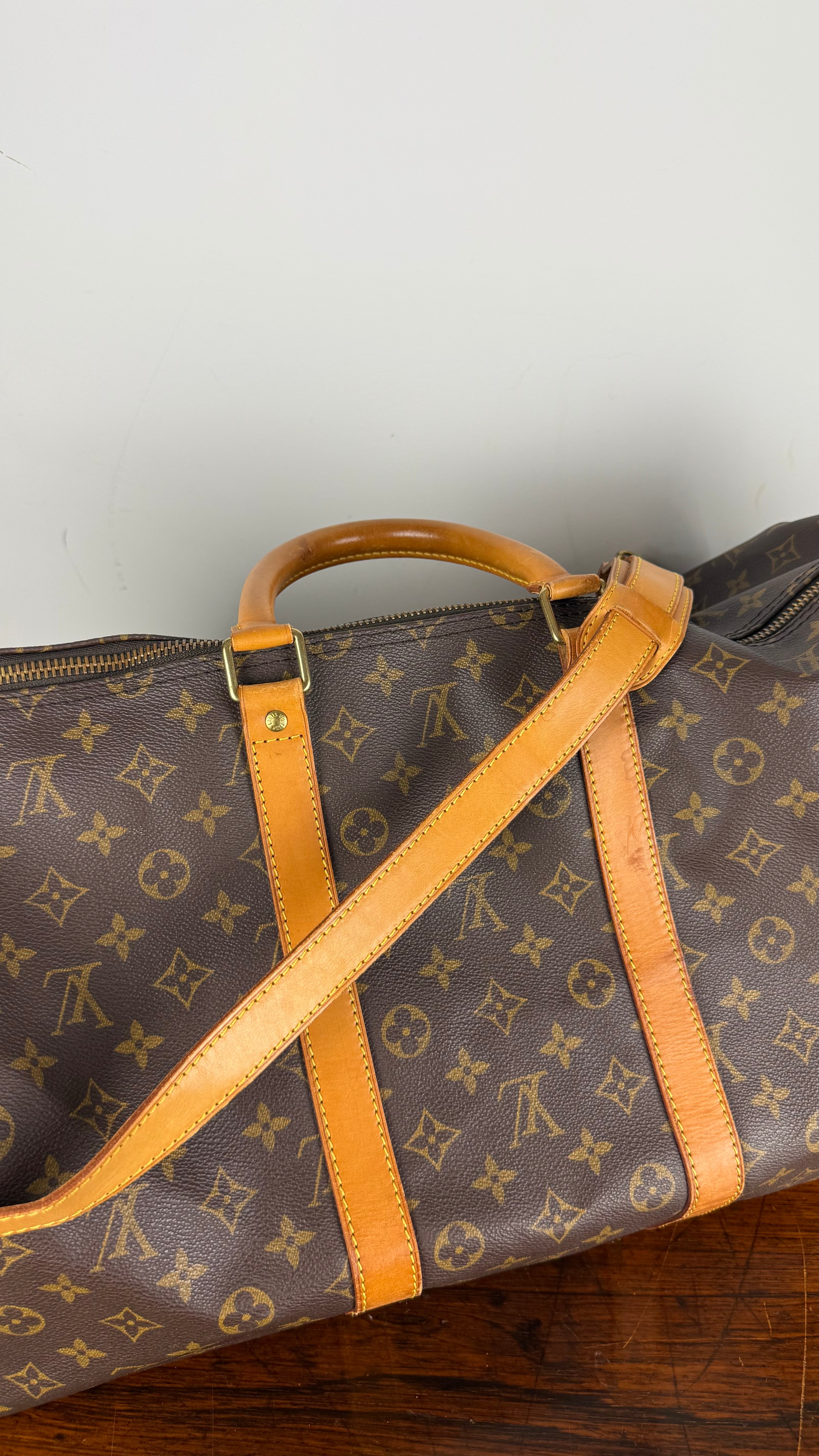 Um clássico da Louis Vuitton, a Keepall 55 é perfeita para viagens curtas e considerada uma peça indispensável para colecionadores e amantes da maison.