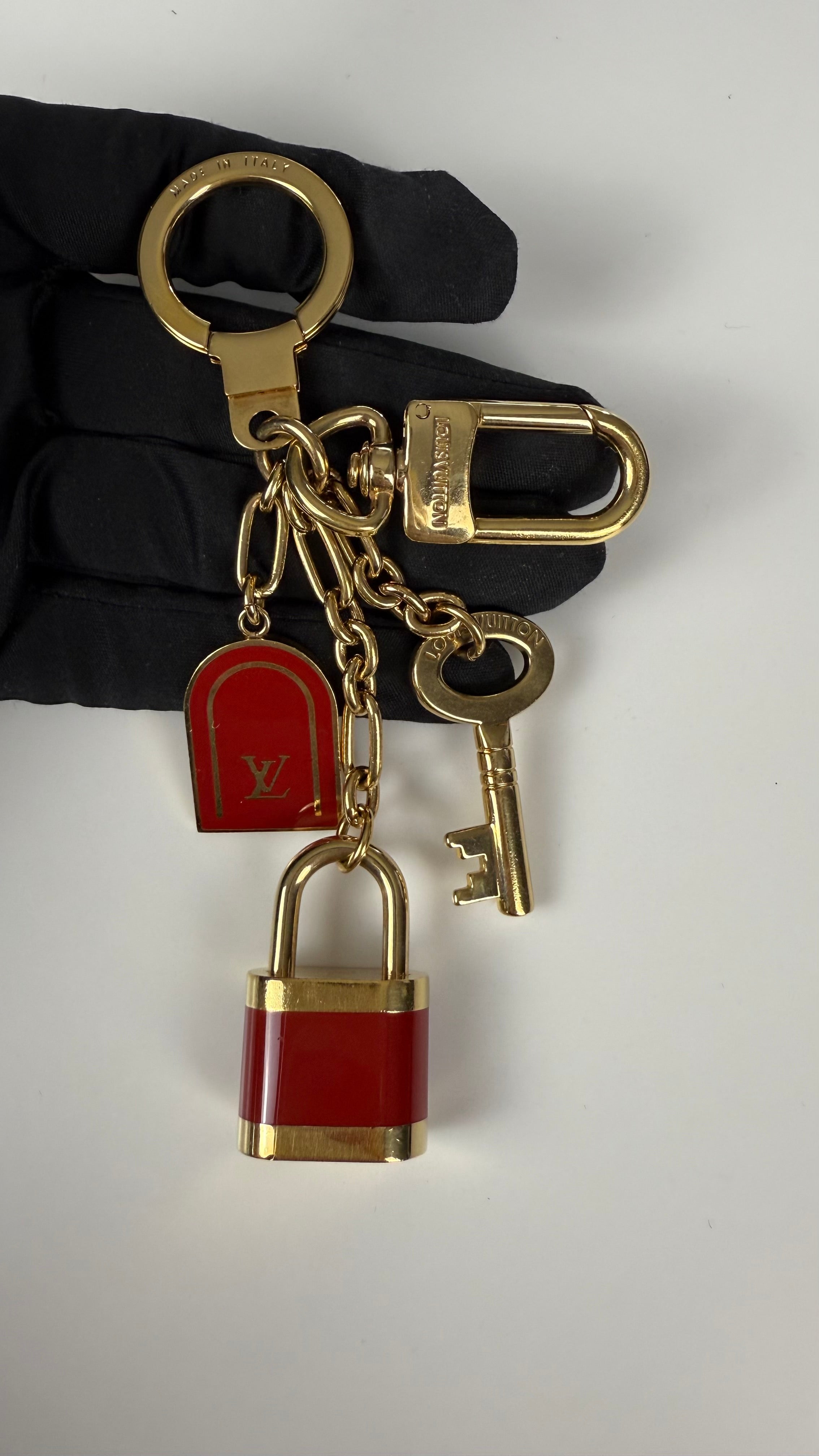Este exclusivo key charm Louis Vuitton combina luxo e irreverência em cada detalhe. Confeccionado em metal dourado polido, o acessório apresenta três charms icônicos: