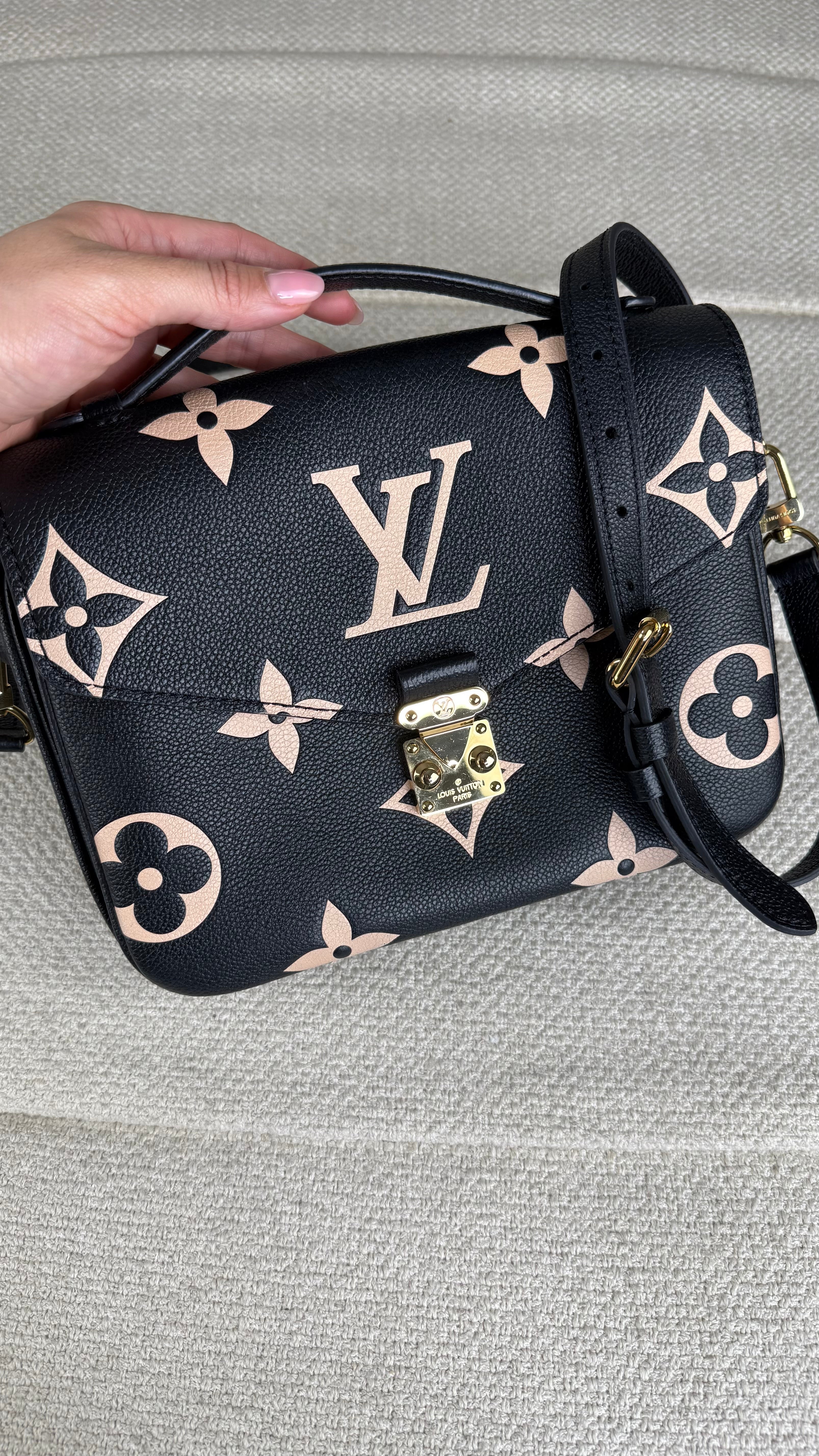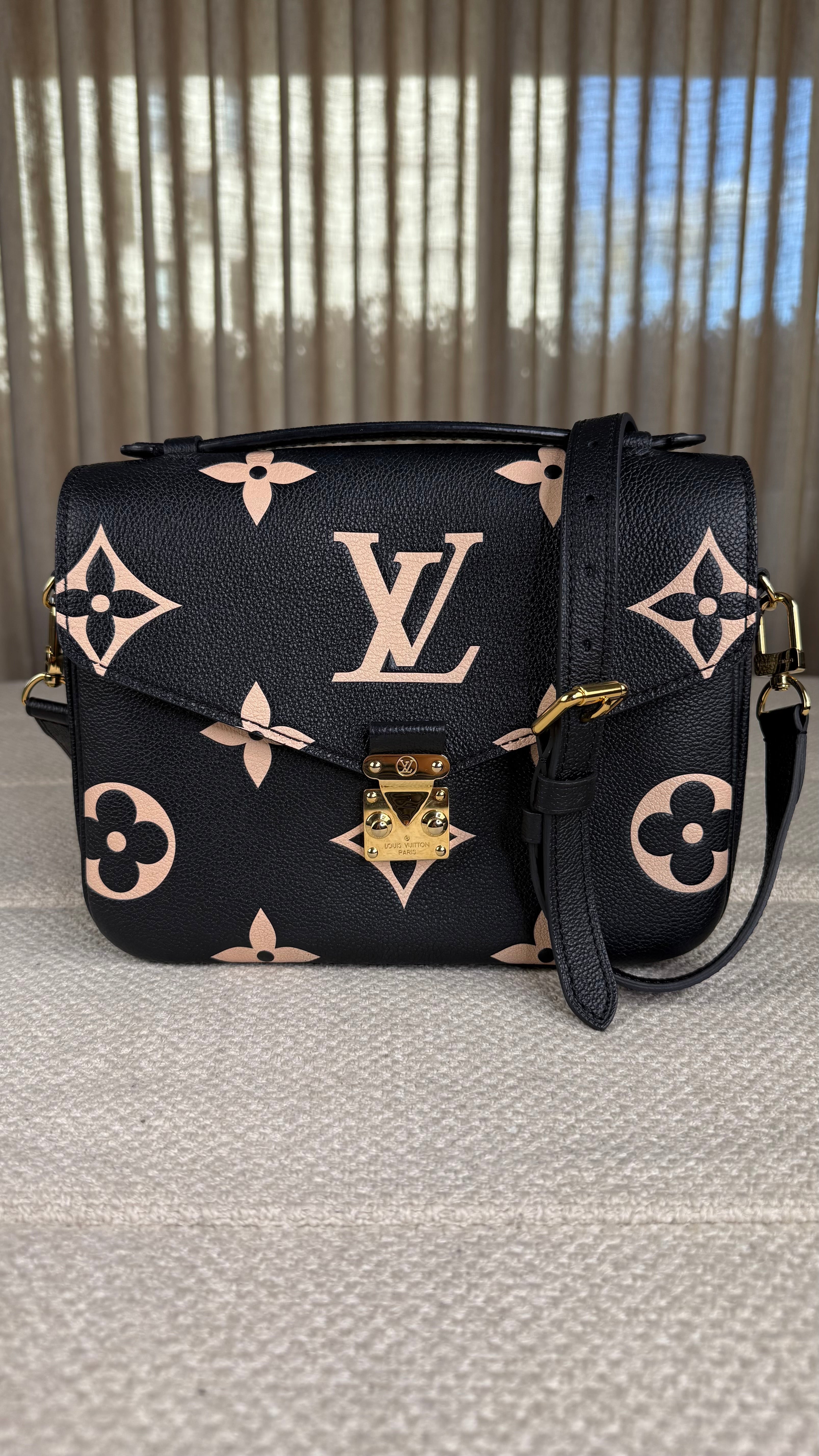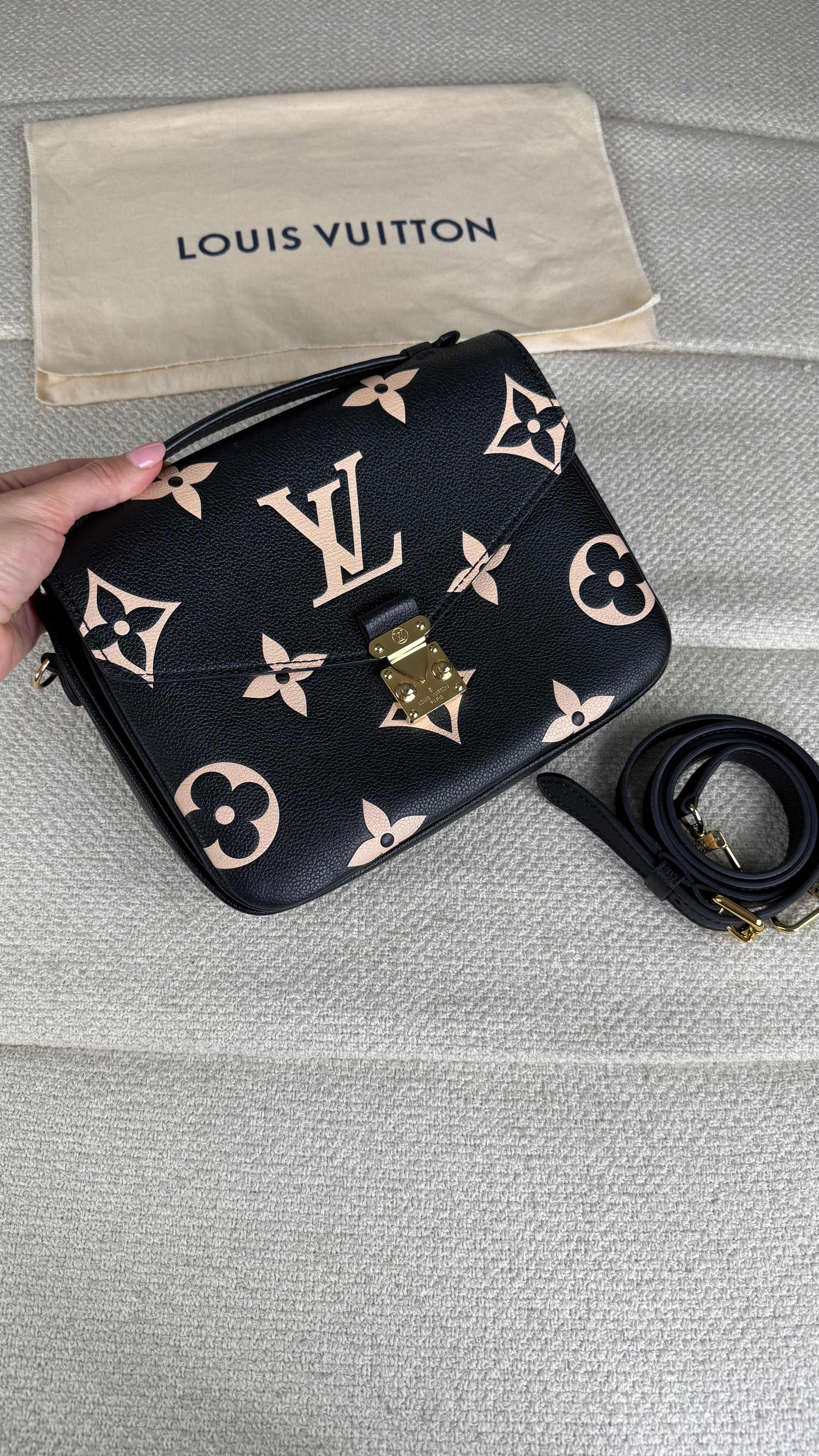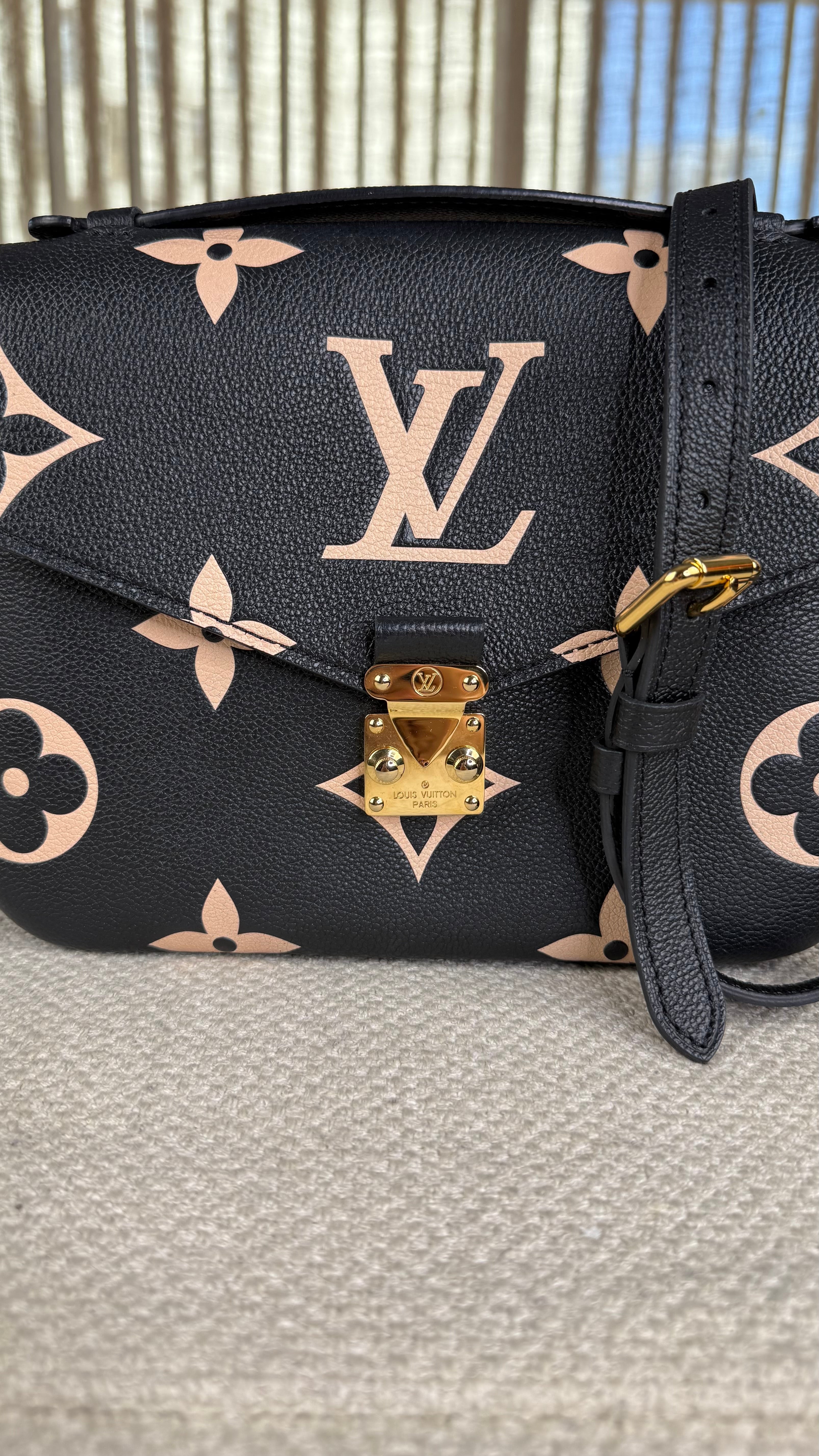 A Louis Vuitton Pochette Métis Monogram Giant é uma reinterpretação ousada de um dos modelos mais icônicos da maison francesa. Combinando a silhueta estruturada da clássica Pochette Métis com o padrão Monogram Giant, esta bolsa destaca-se pela sua presença marcante e elegância contemporânea