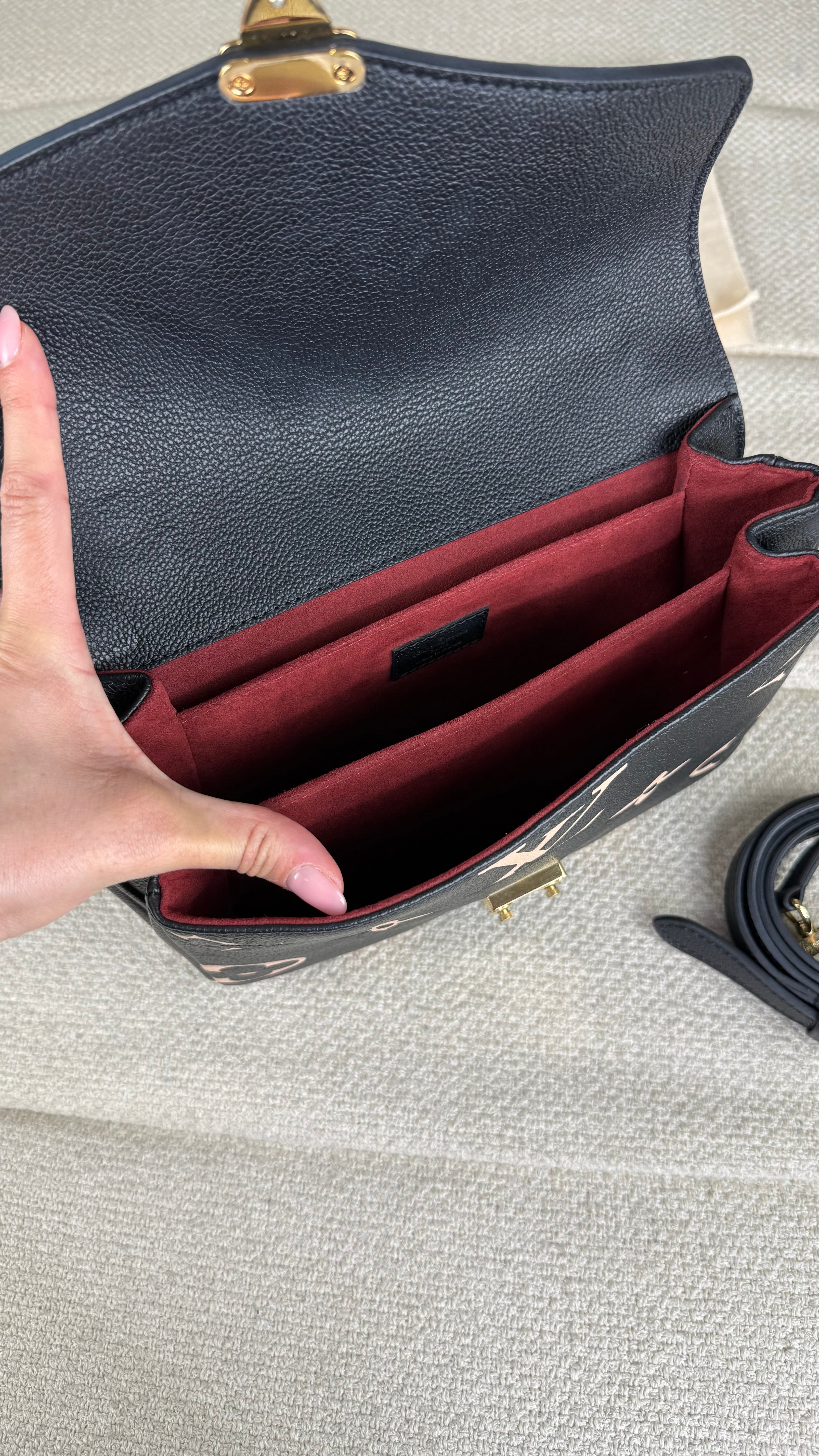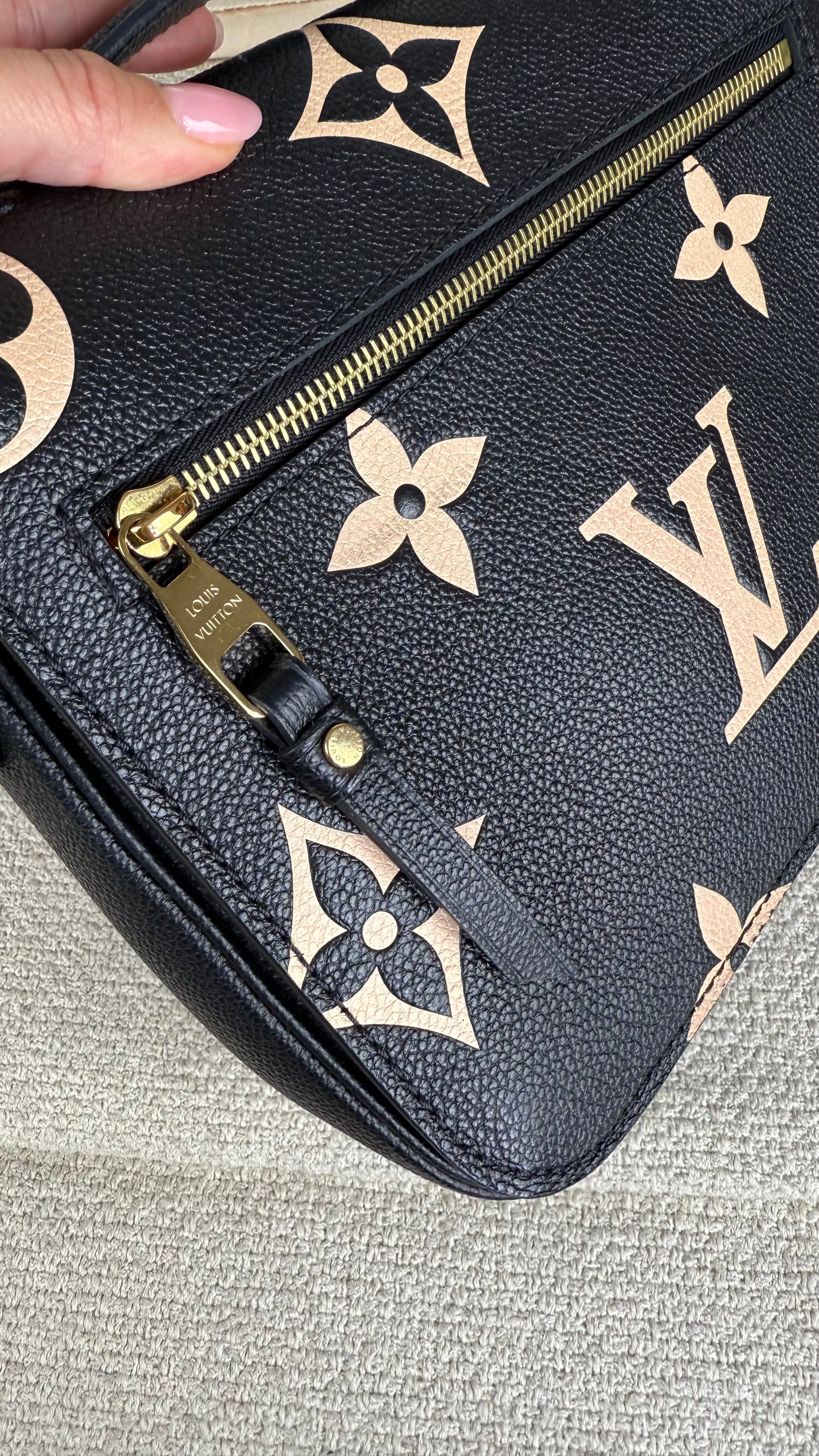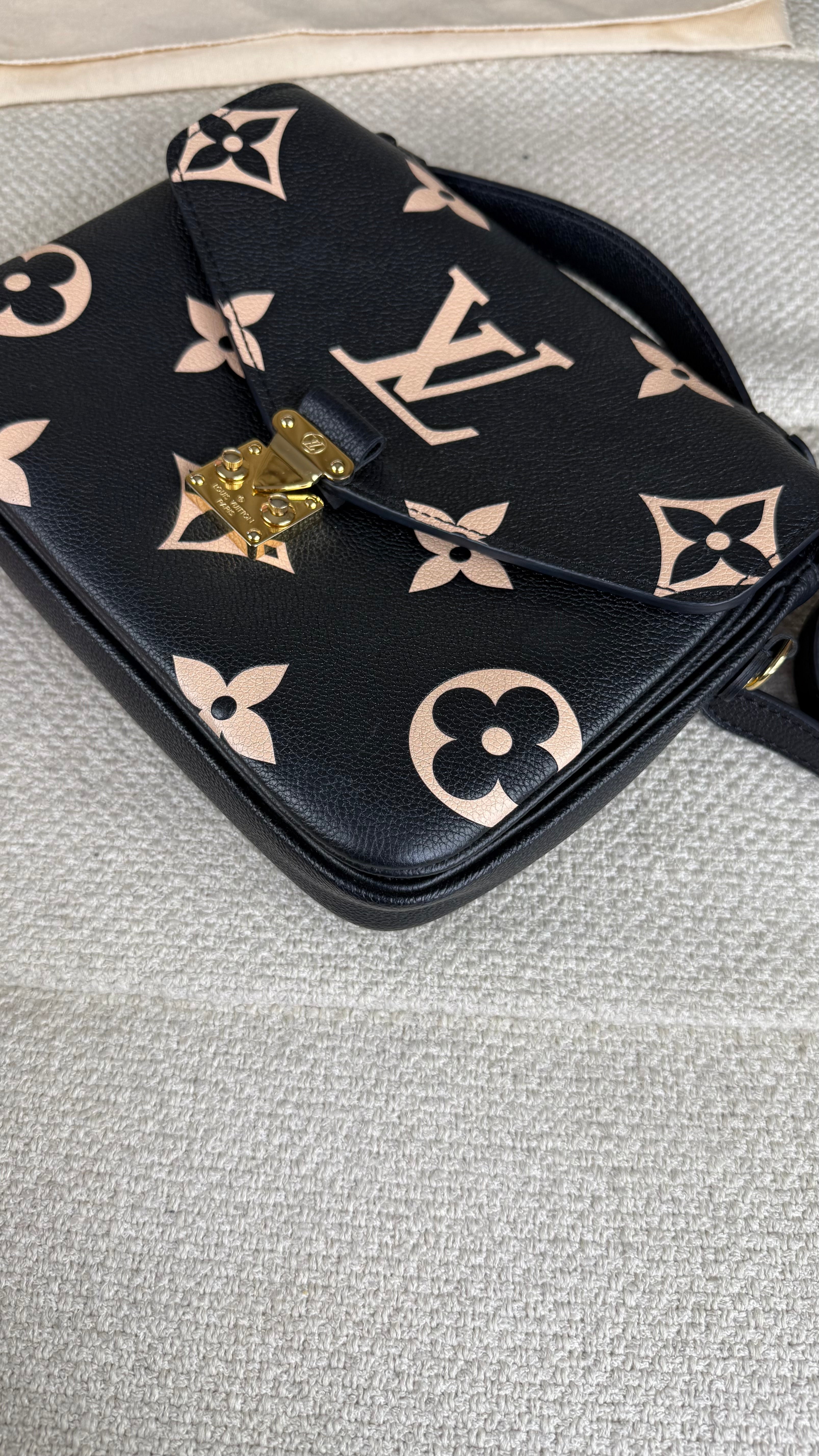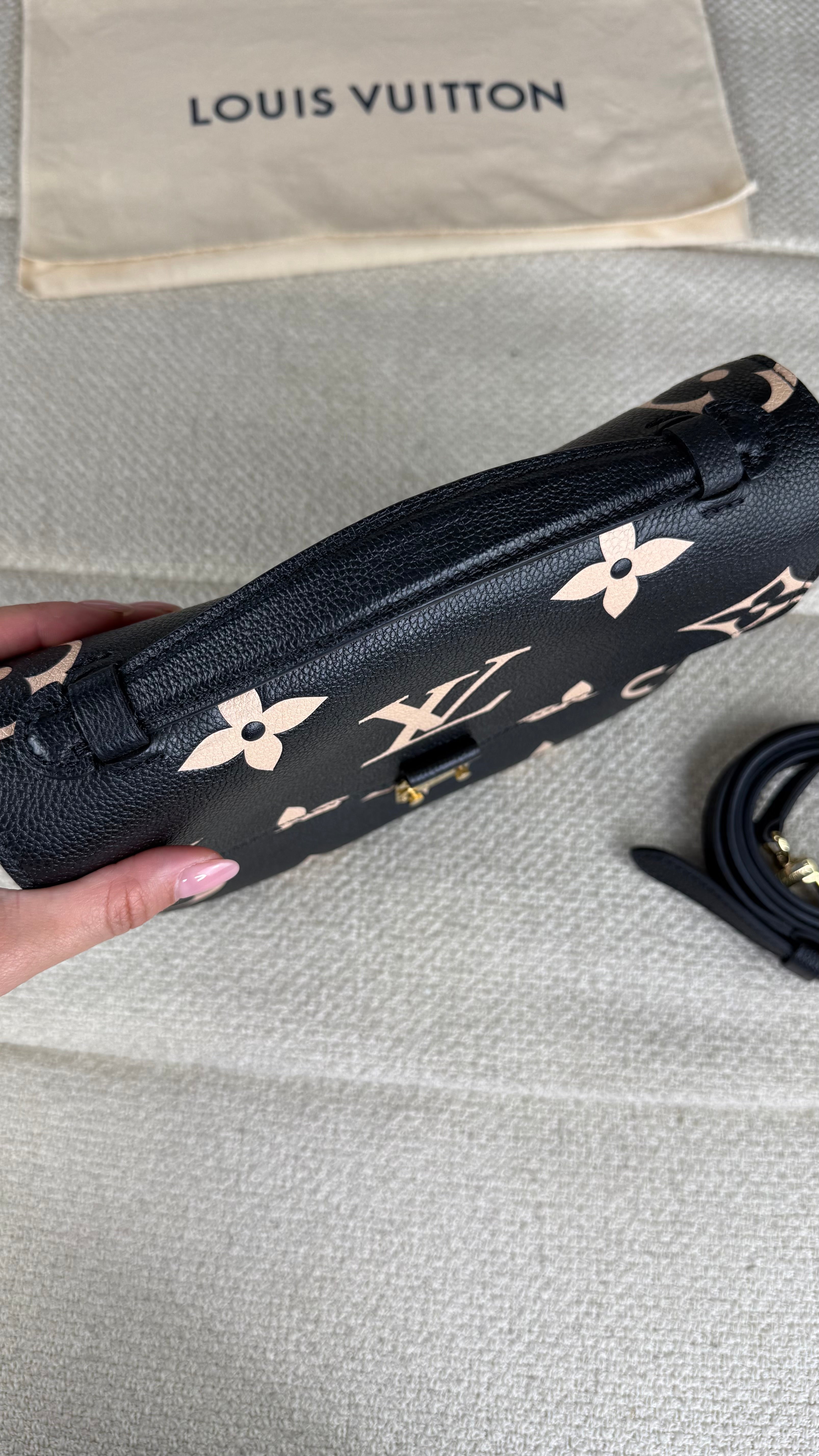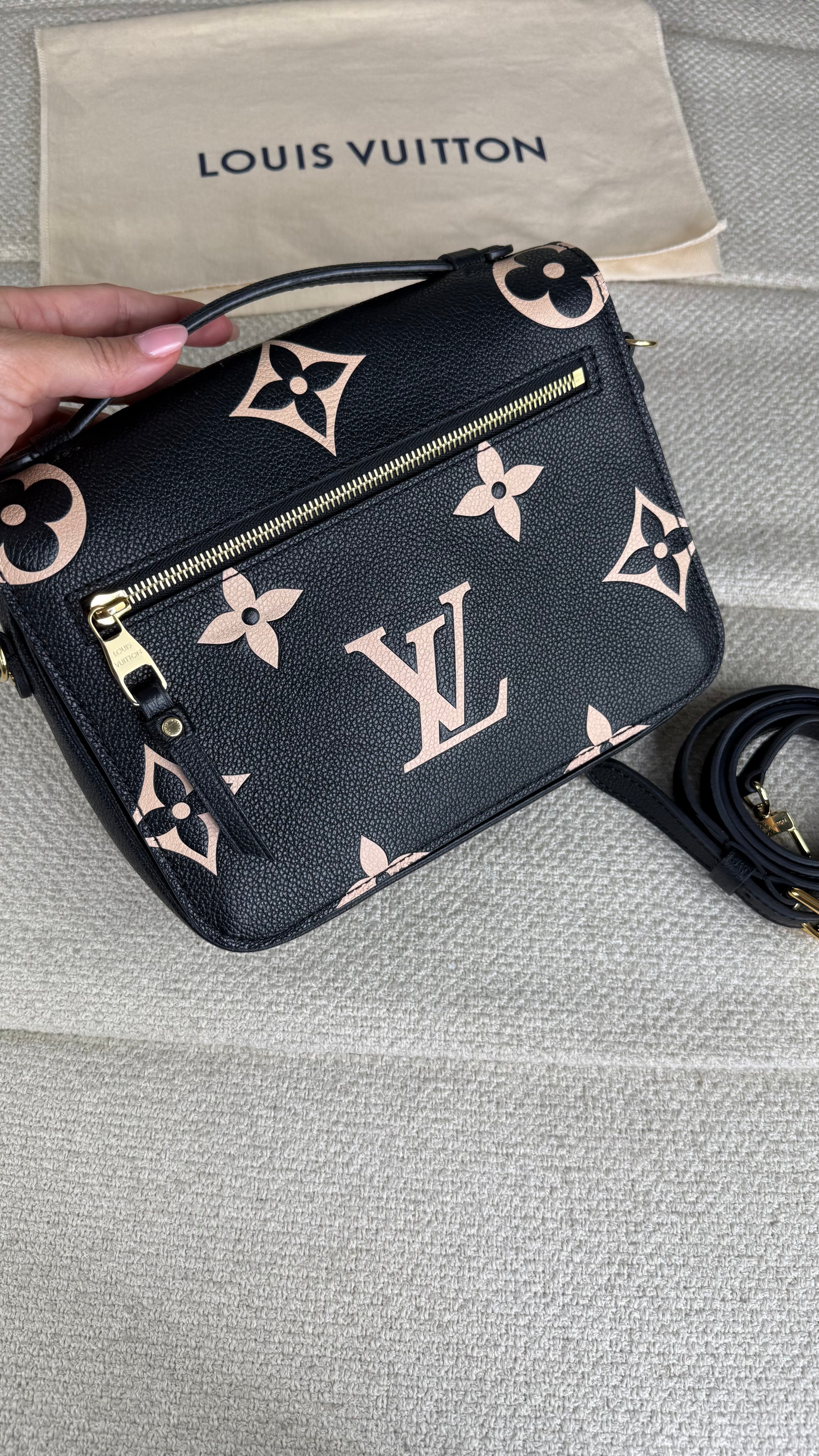 A Louis Vuitton Pochette Métis Monogram Giant é uma reinterpretação ousada de um dos modelos mais icônicos da maison francesa. Combinando a silhueta estruturada da clássica Pochette Métis com o padrão Monogram Giant, esta bolsa destaca-se pela sua presença marcante e elegância contemporânea
