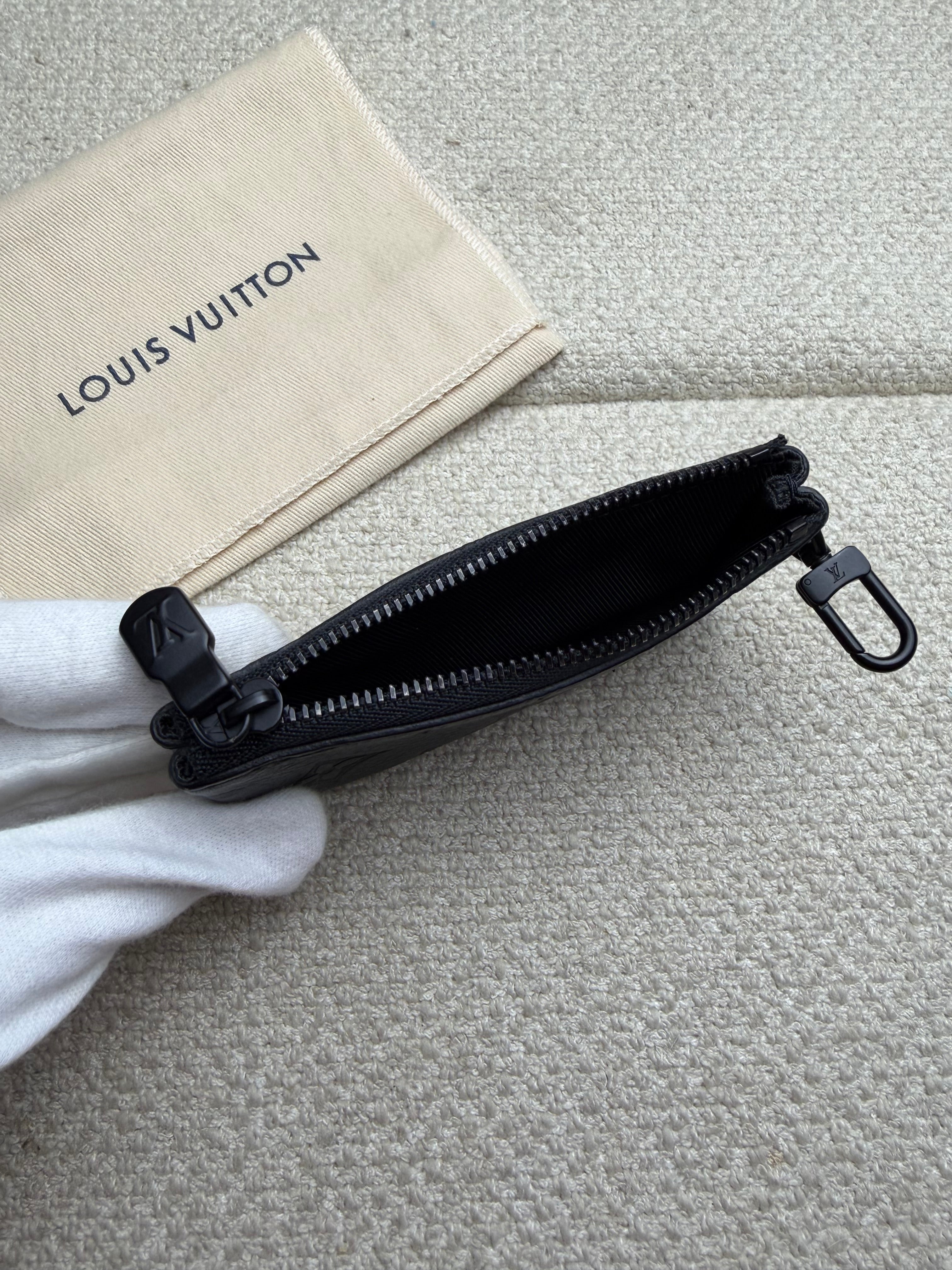O porta-cartões e porta-moedas Louis Vuitton em couro Monogram Empreinte preto é um acessório indispensável para quem valoriza a elegância e a funcionalidade. Fabricado em couro legítimo granulado, exibe o icónico monograma LV em relevo, conferindo-lhe um estilo discreto e sofisticado.
