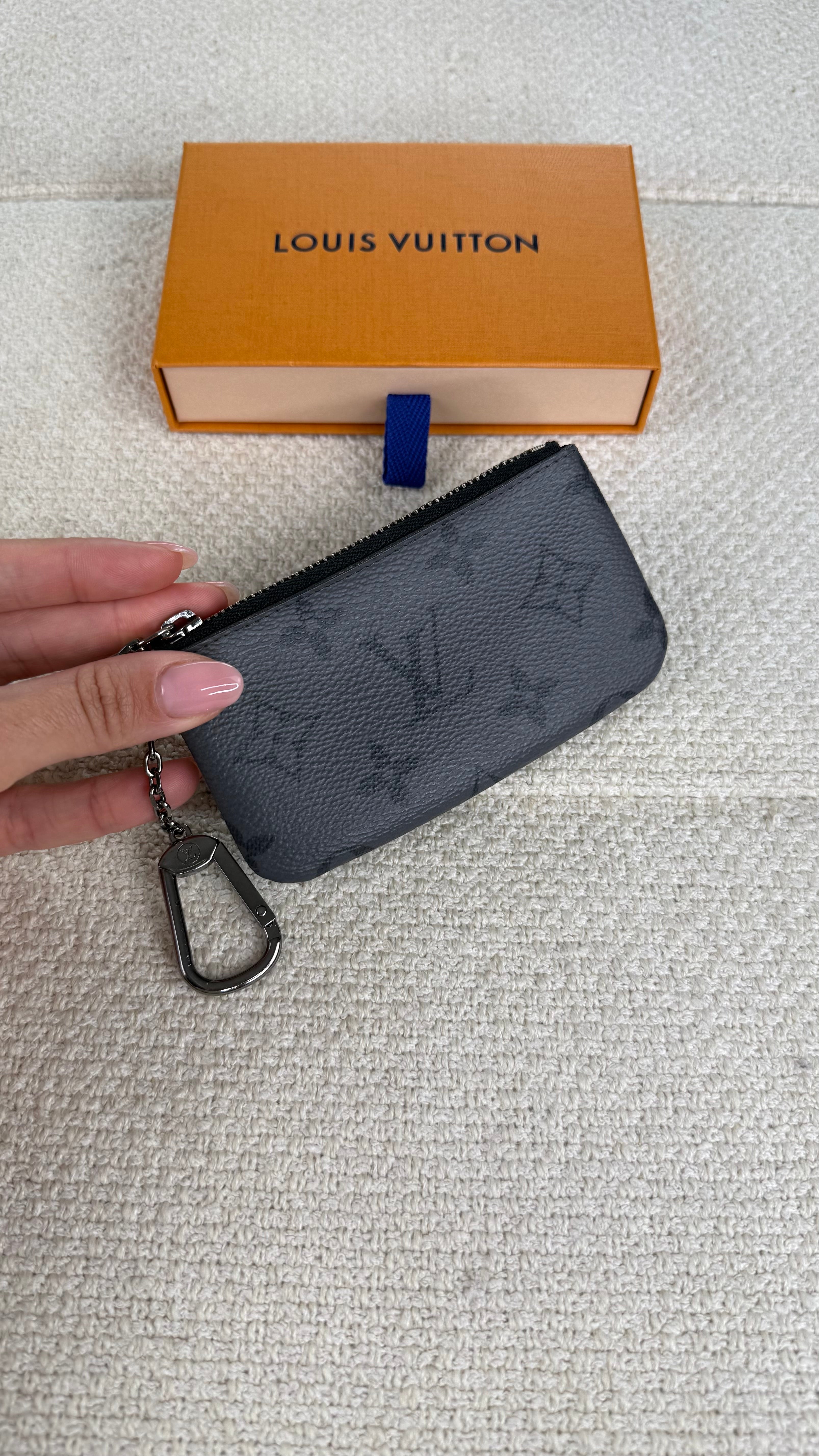 Key Pouch (Clés) – É um dos mais icônicos. Vem com um pequeno gancho interno para chave e fecha com zíper. Cabe moedas, cartões e chaves.