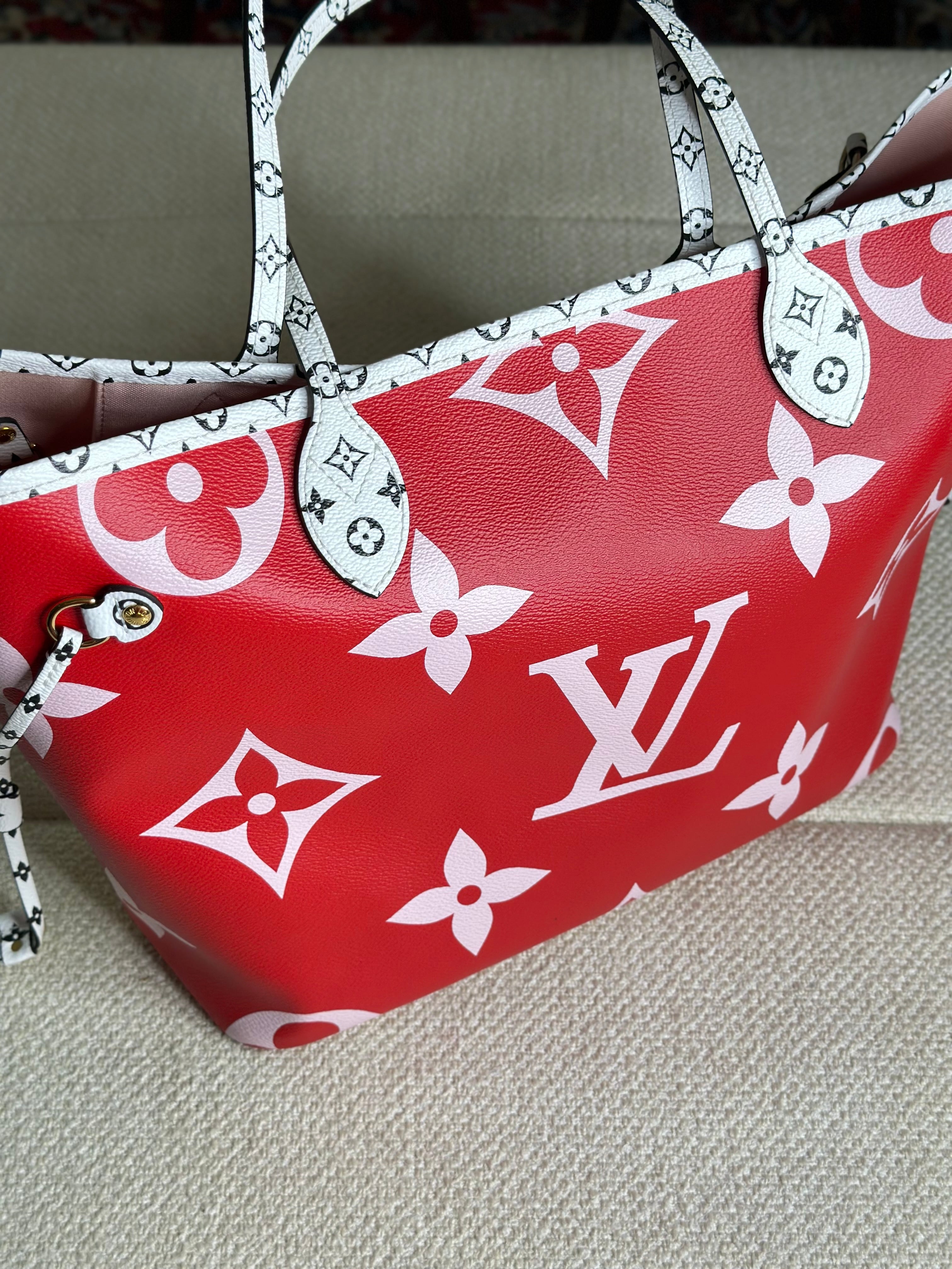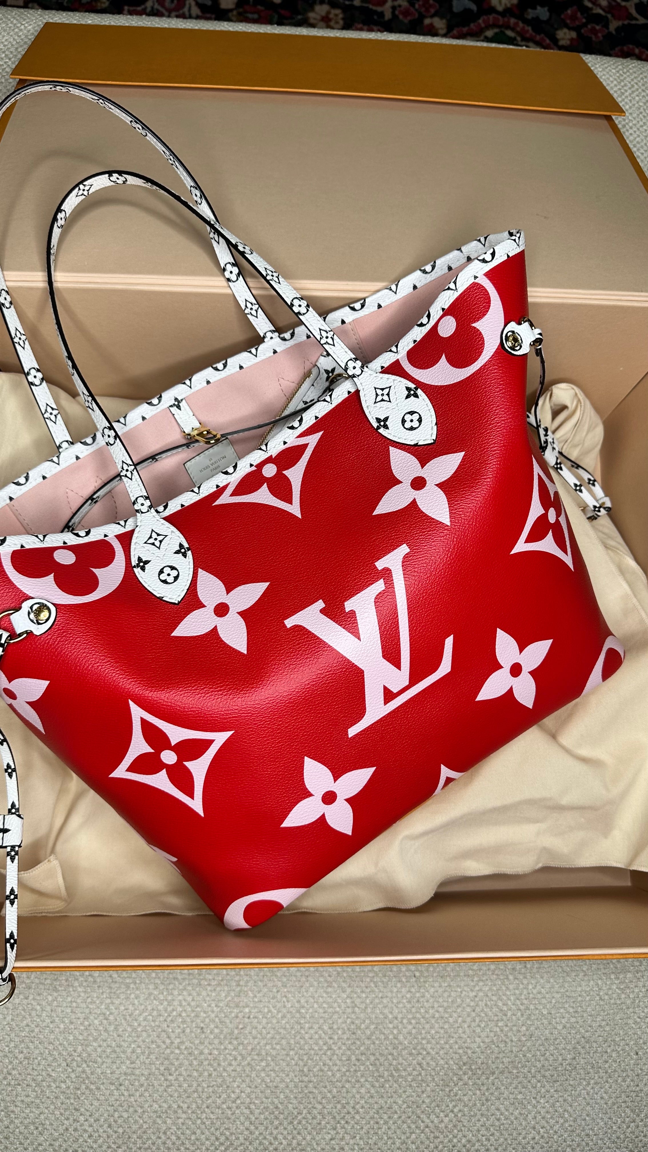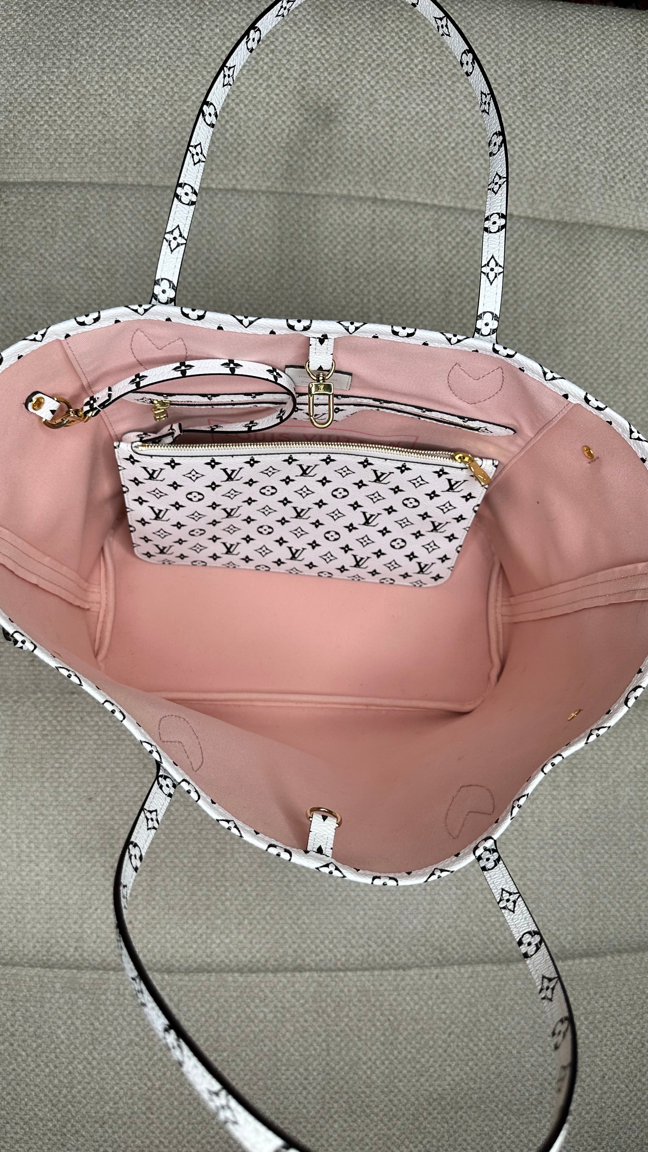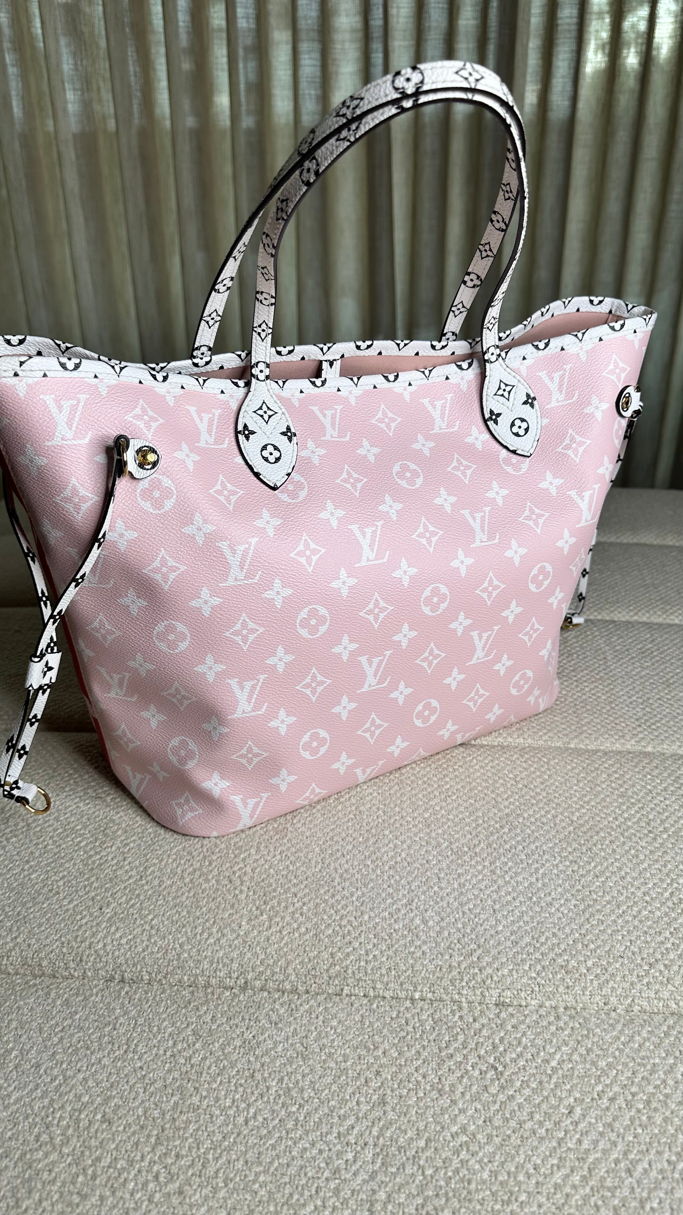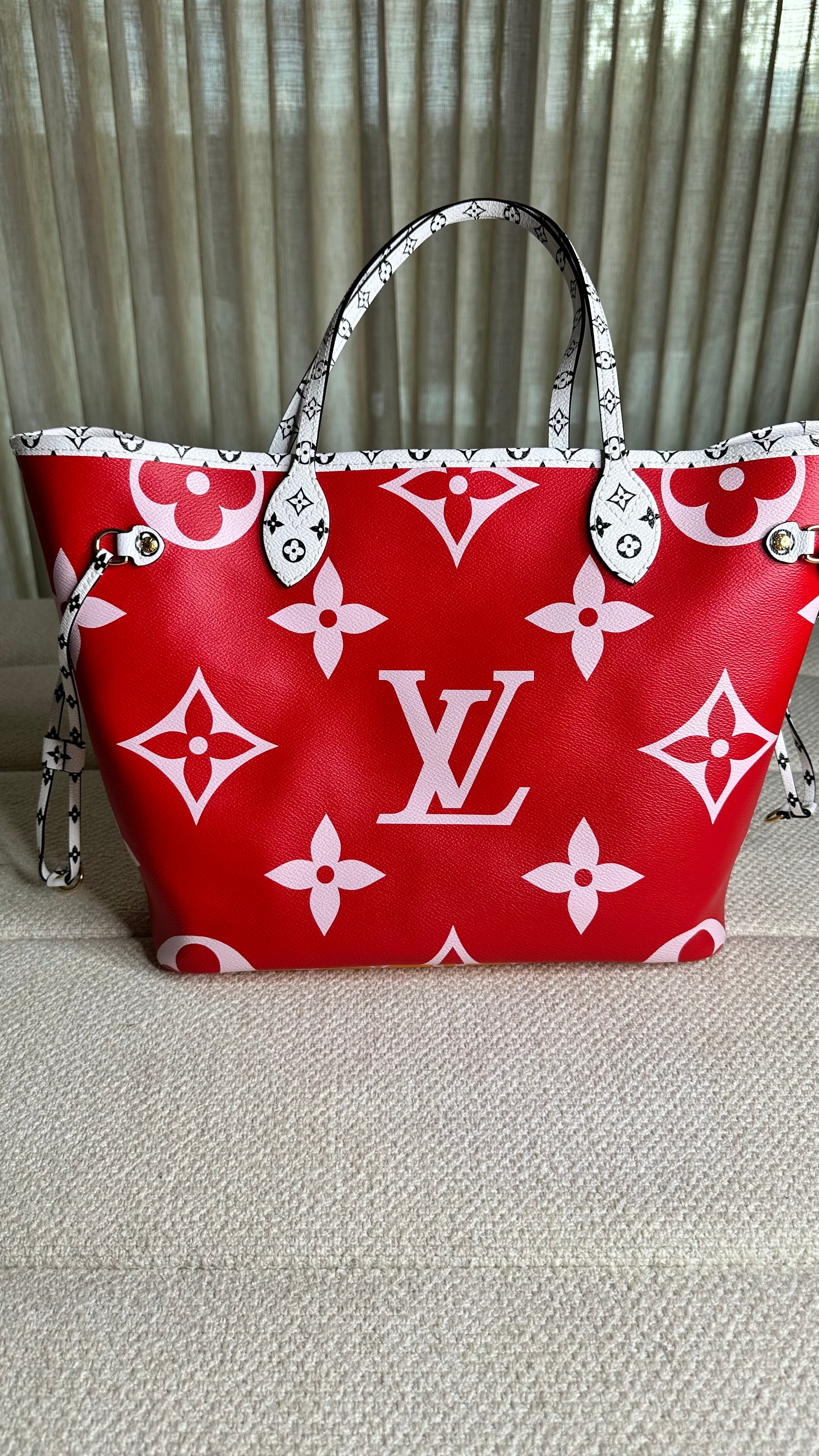 Cor: multicolor, vermelho, padrão monograma rosa, fundo laranja, e a Pochette padrão monograma branco e preto.