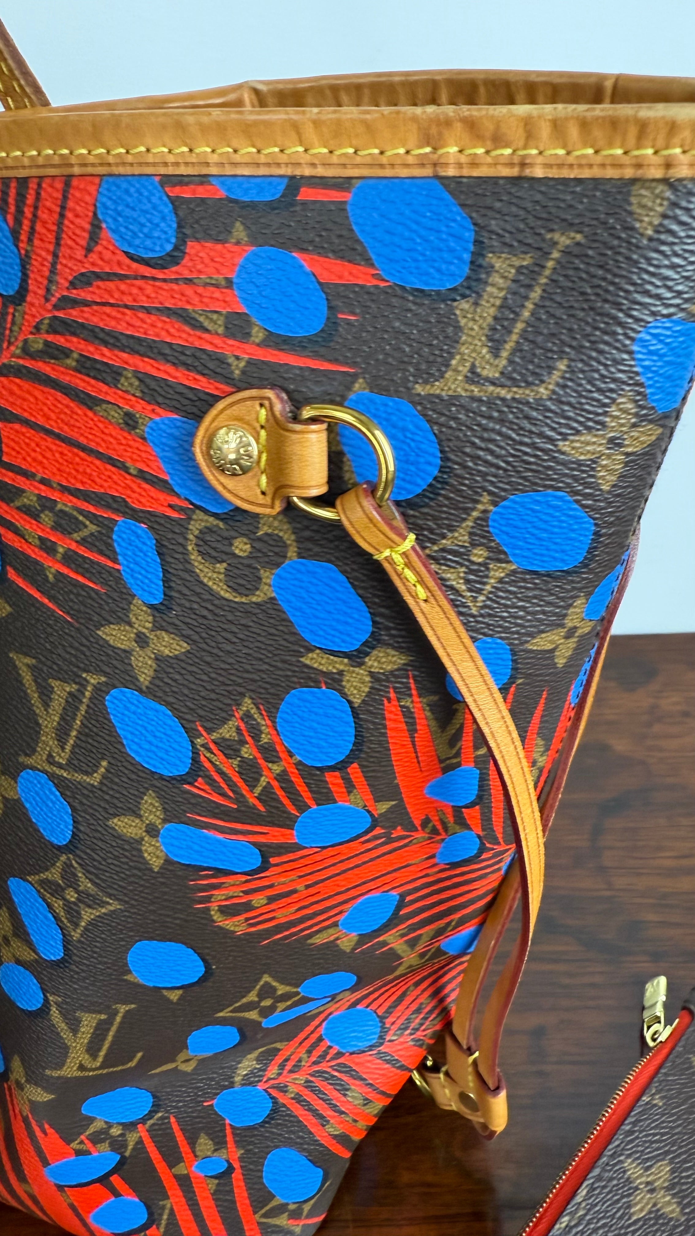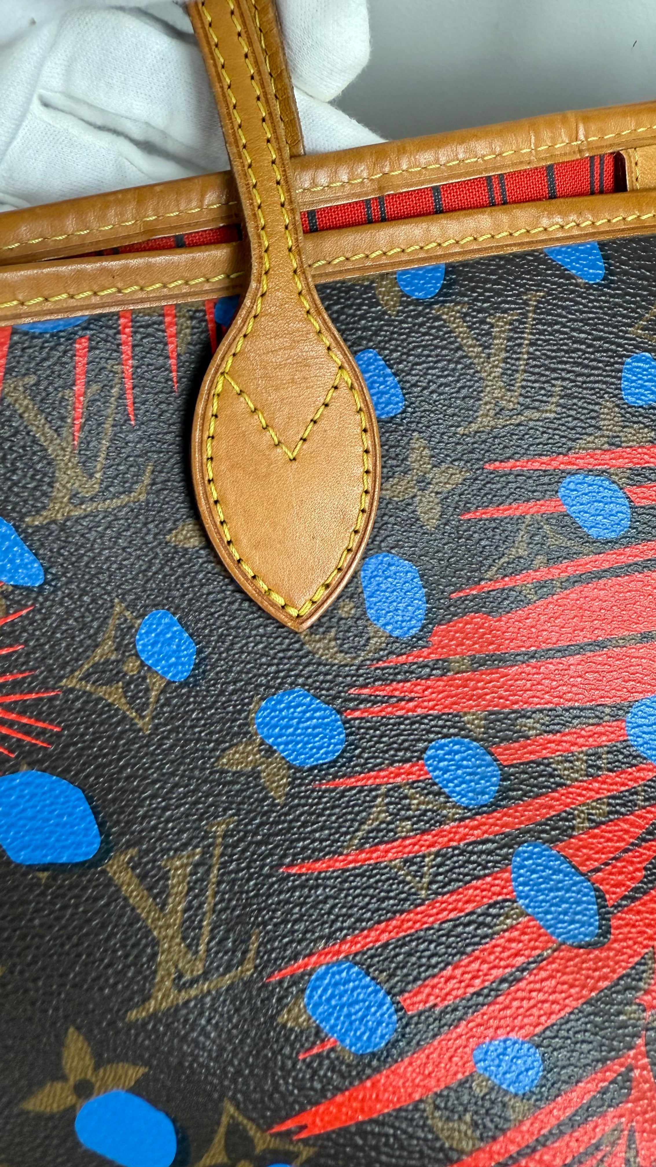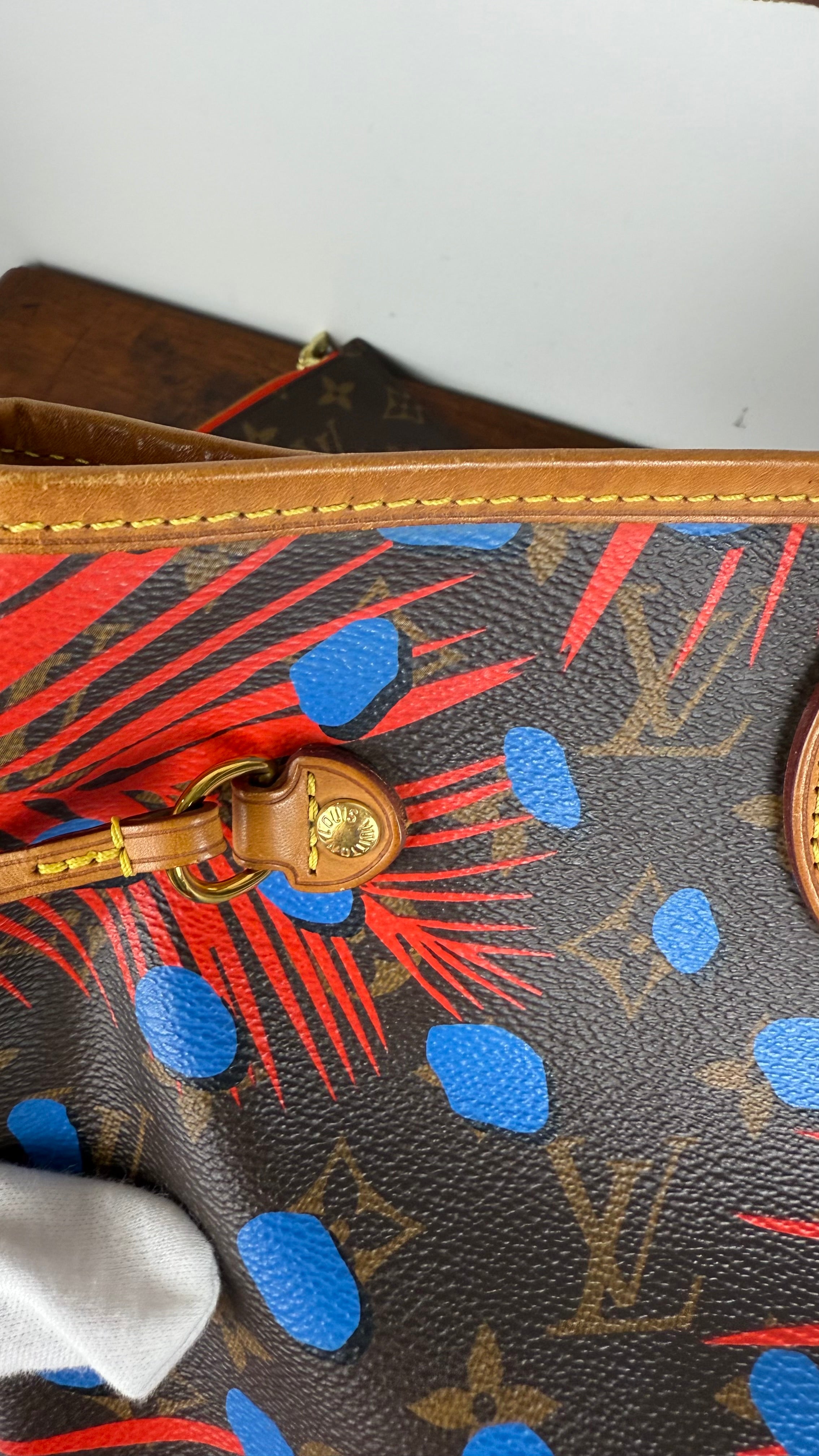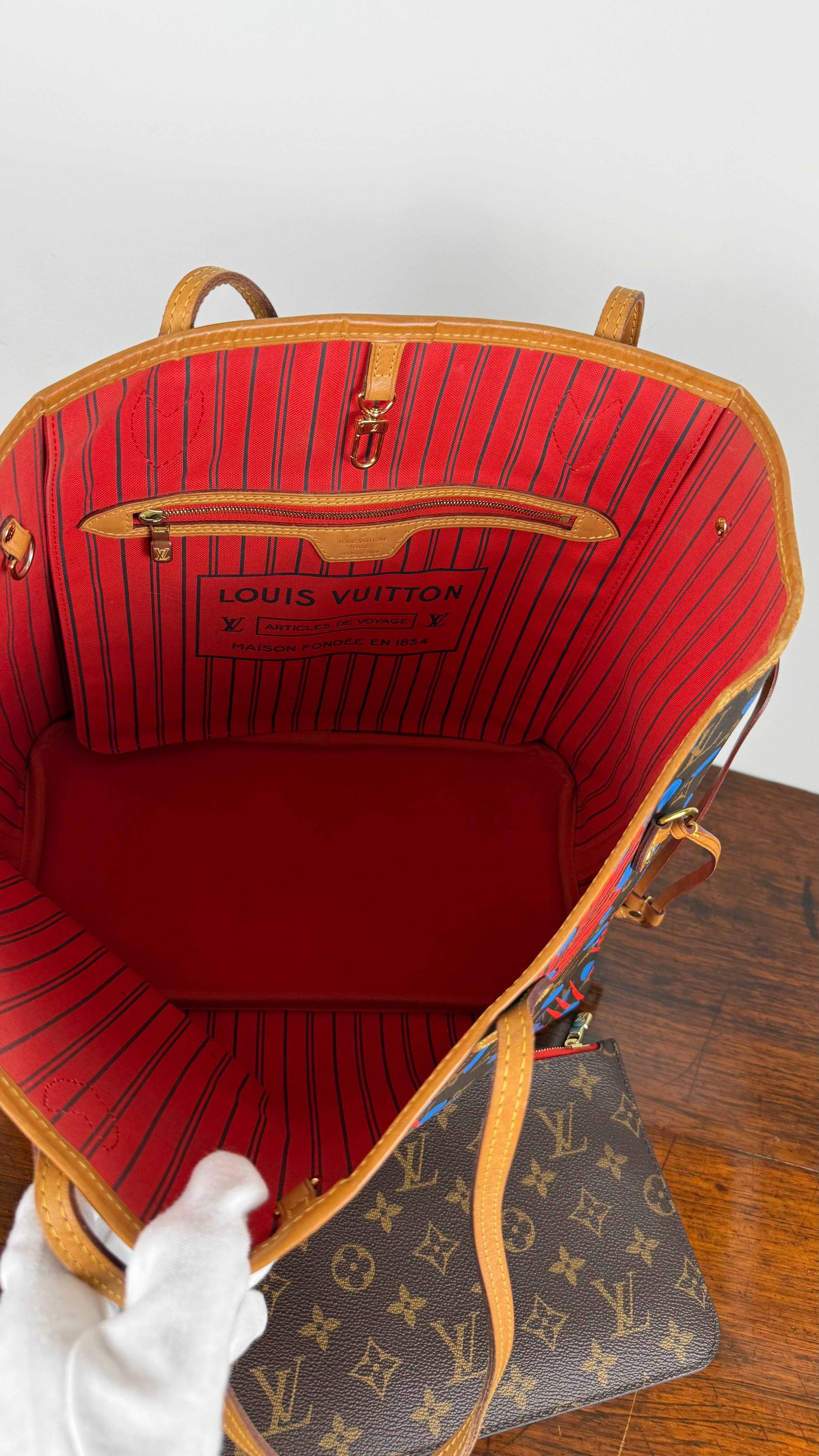 A Neverfull MM é um dos modelos mais icónicos da Louis Vuitton, conhecida pelo seu formato espaçoso e versatilidade. Nesta versão limited edition, o clássico canvas monogram recebe um toque vibrante com estampado colorido, tornando a peça única e colecionável.