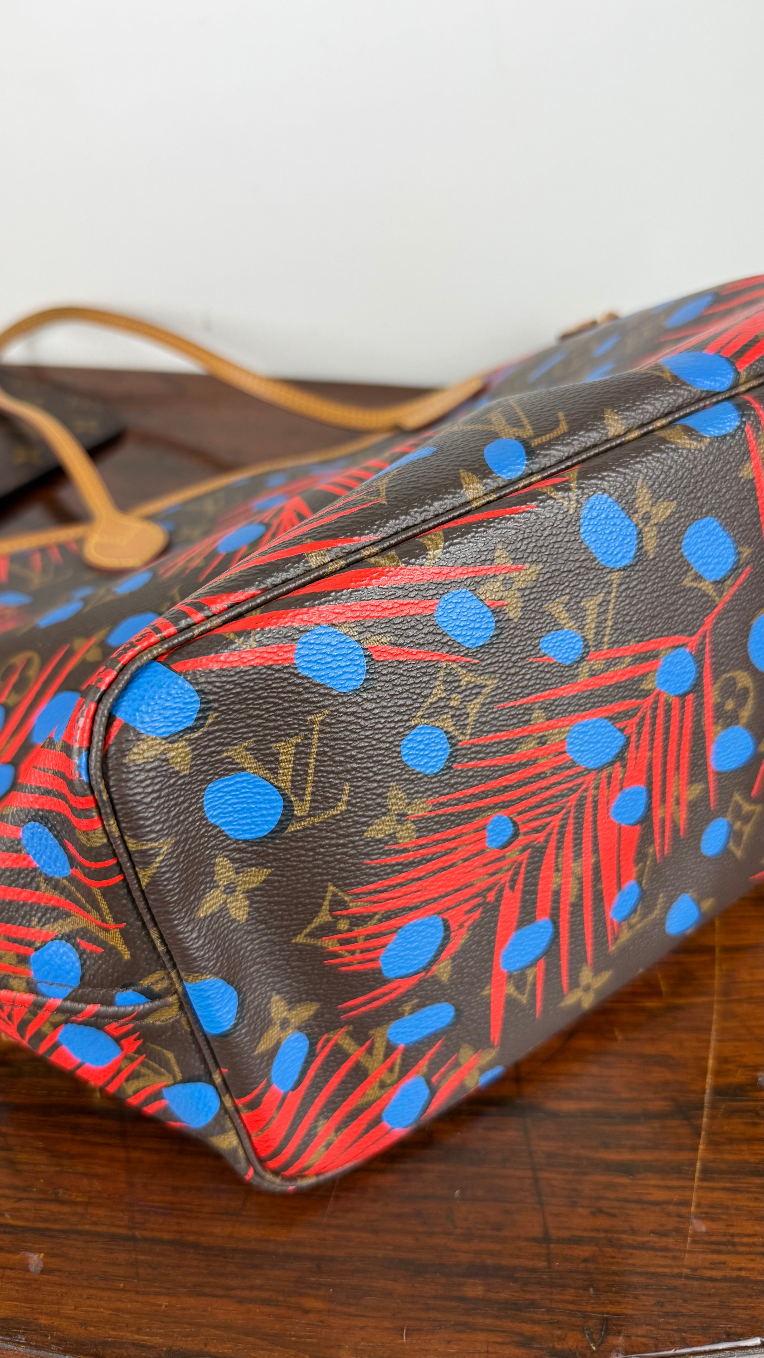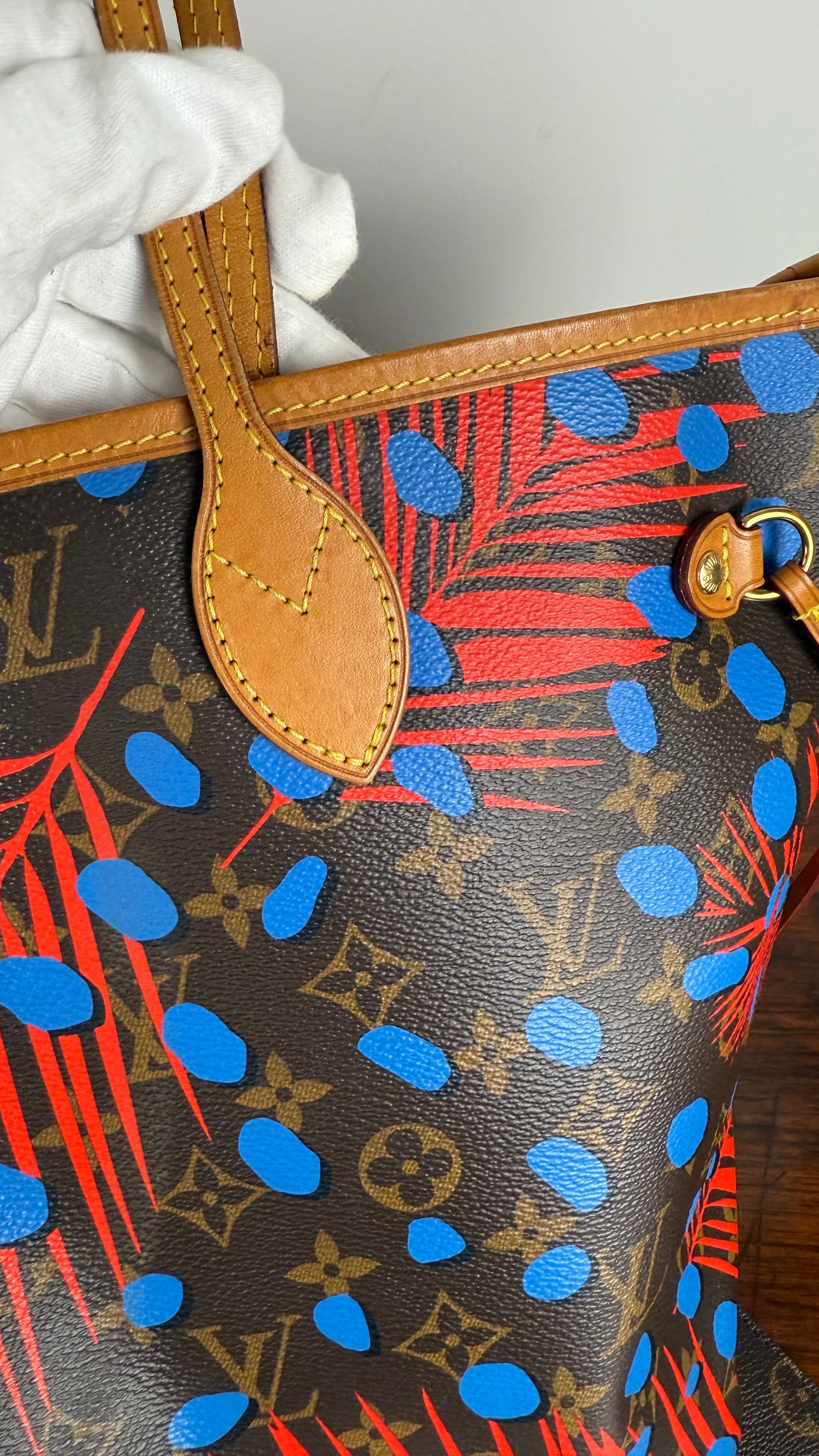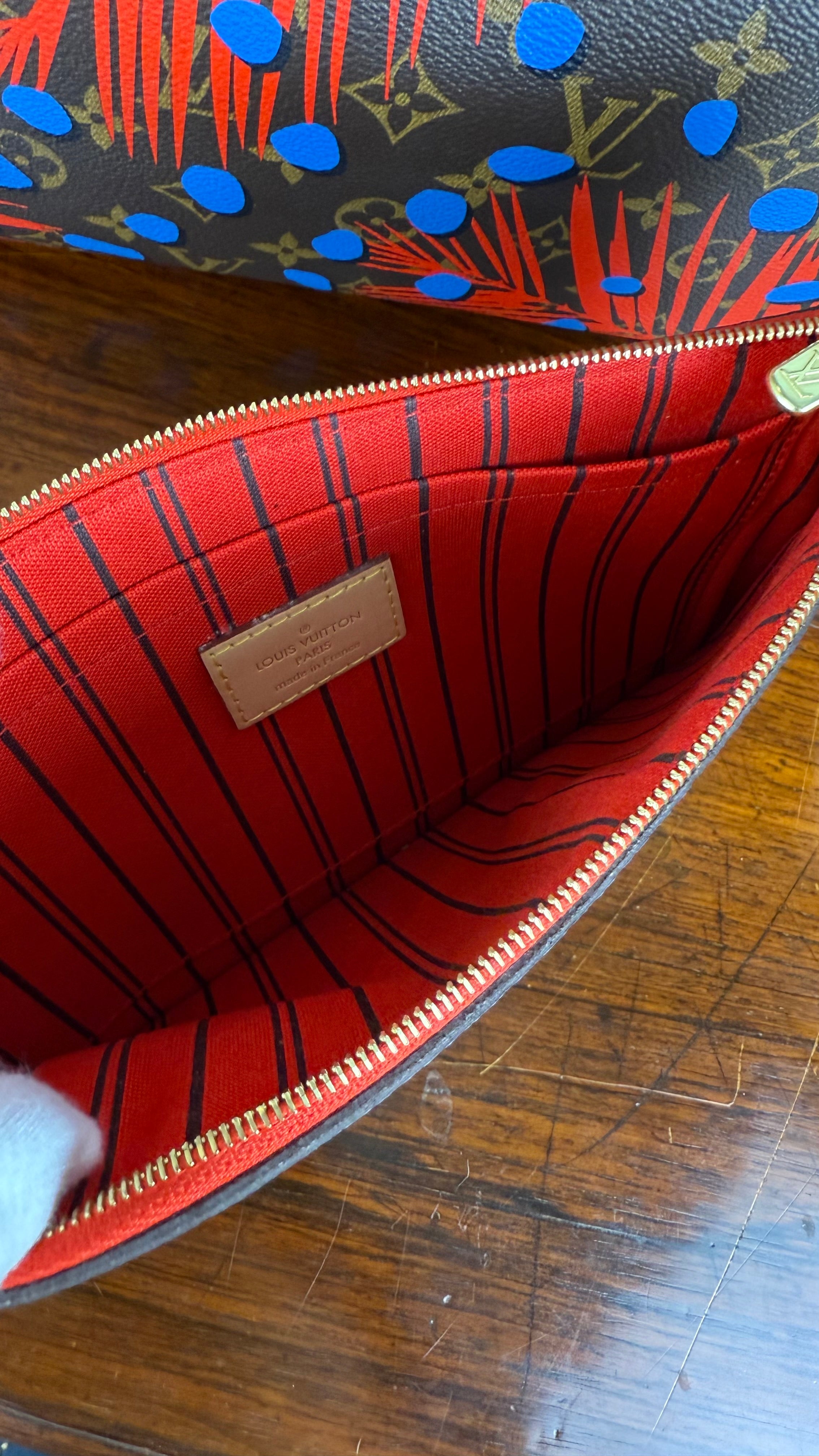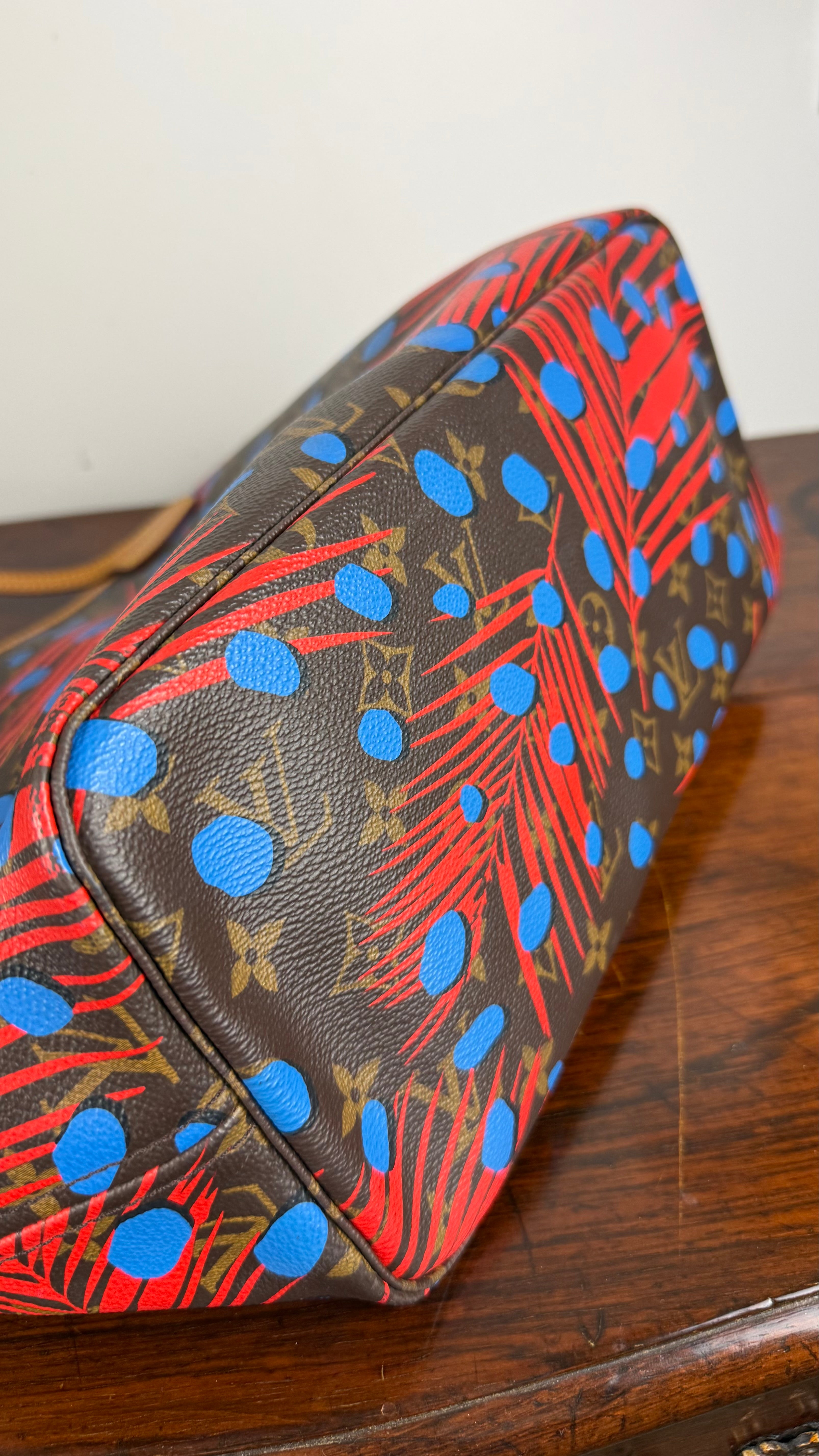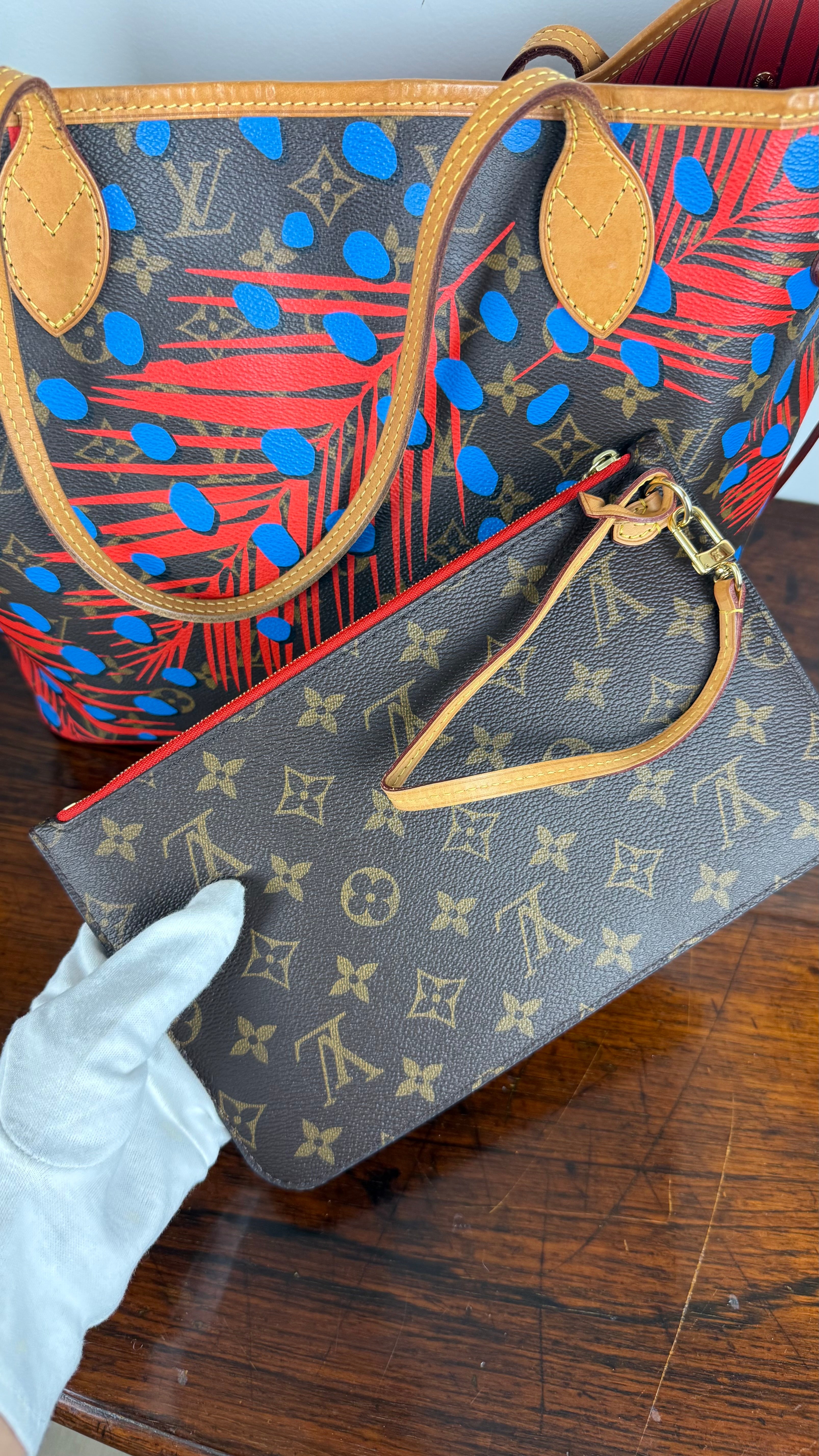 A Neverfull MM é um dos modelos mais icónicos da Louis Vuitton, conhecida pelo seu formato espaçoso e versatilidade. Nesta versão limited edition, o clássico canvas monogram recebe um toque vibrante com estampado colorido, tornando a peça única e colecionável.