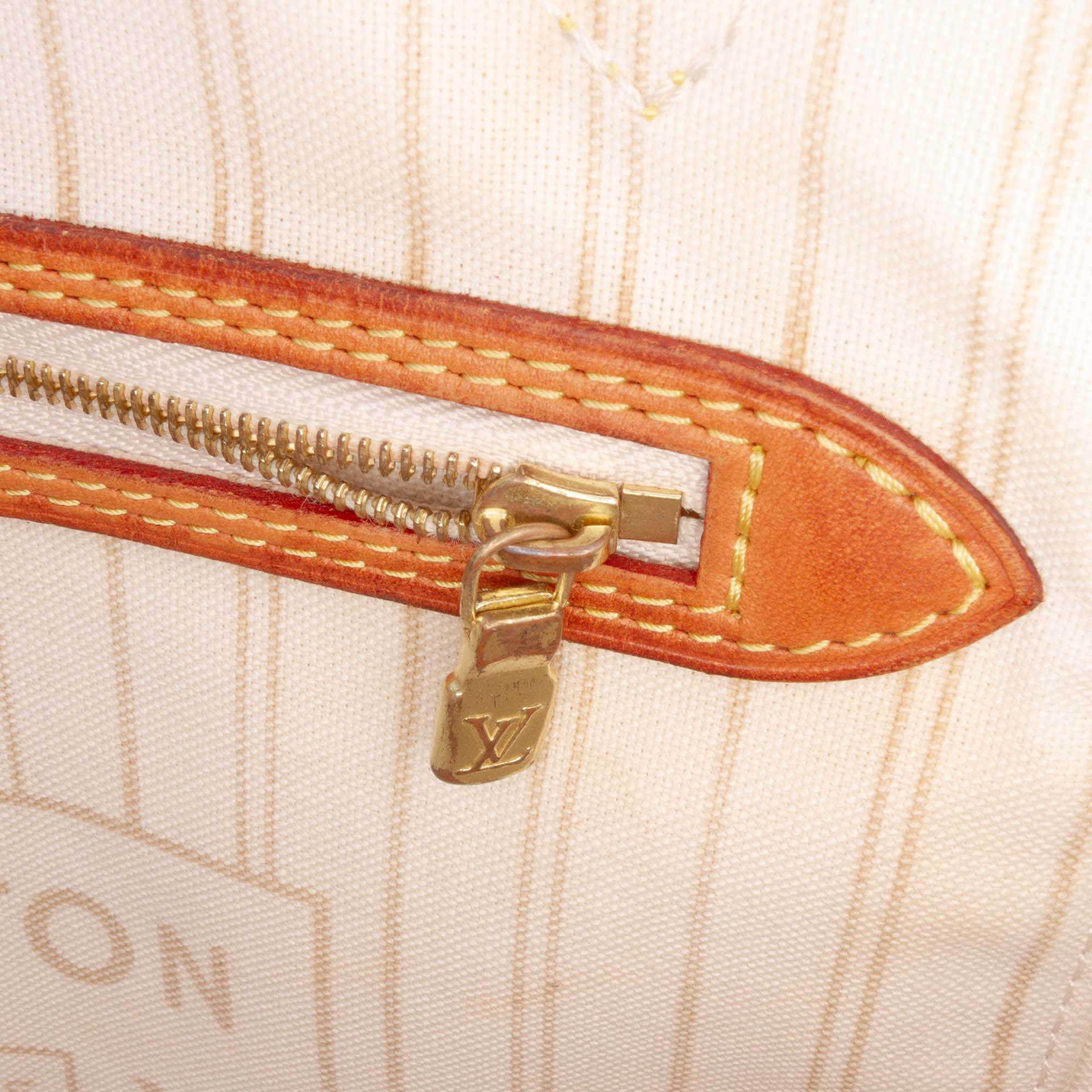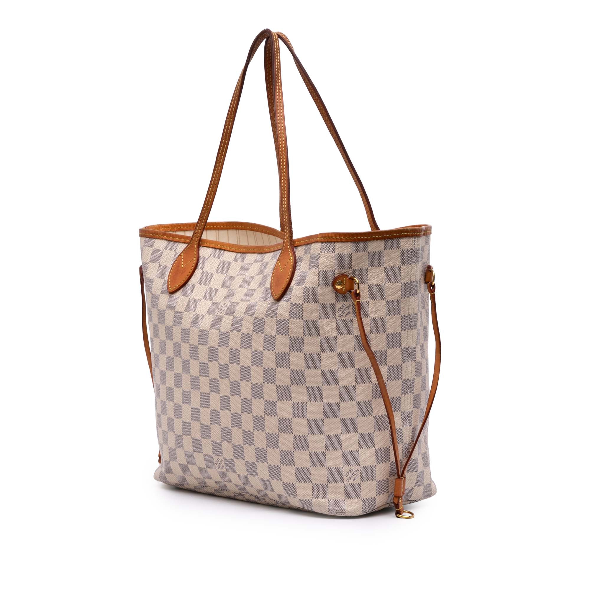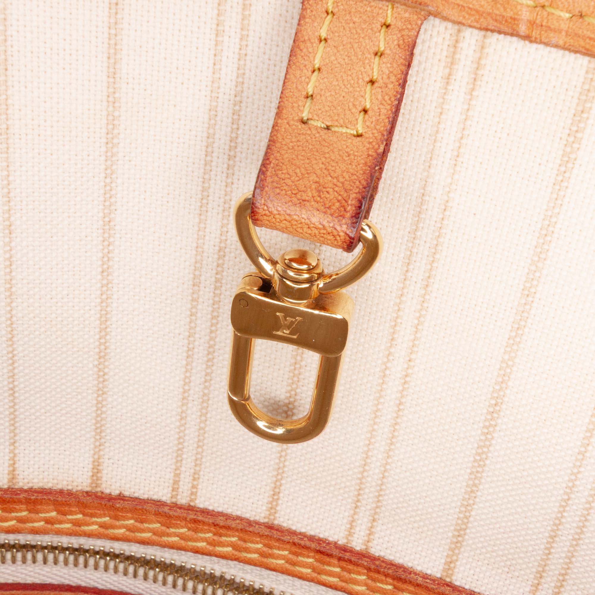 A Louis Vuitton Neverfull Damier Azur é um dos modelos mais icônicos da maison francesa, combinando elegância atemporal e praticidade. Confeccionada em canvas Damier Azur — um padrão quadriculado claro, sofisticado e versátil — a bolsa traz acabamento em couro natural Vachetta e ferragens douradas, que conferem um toque de luxo ao design.