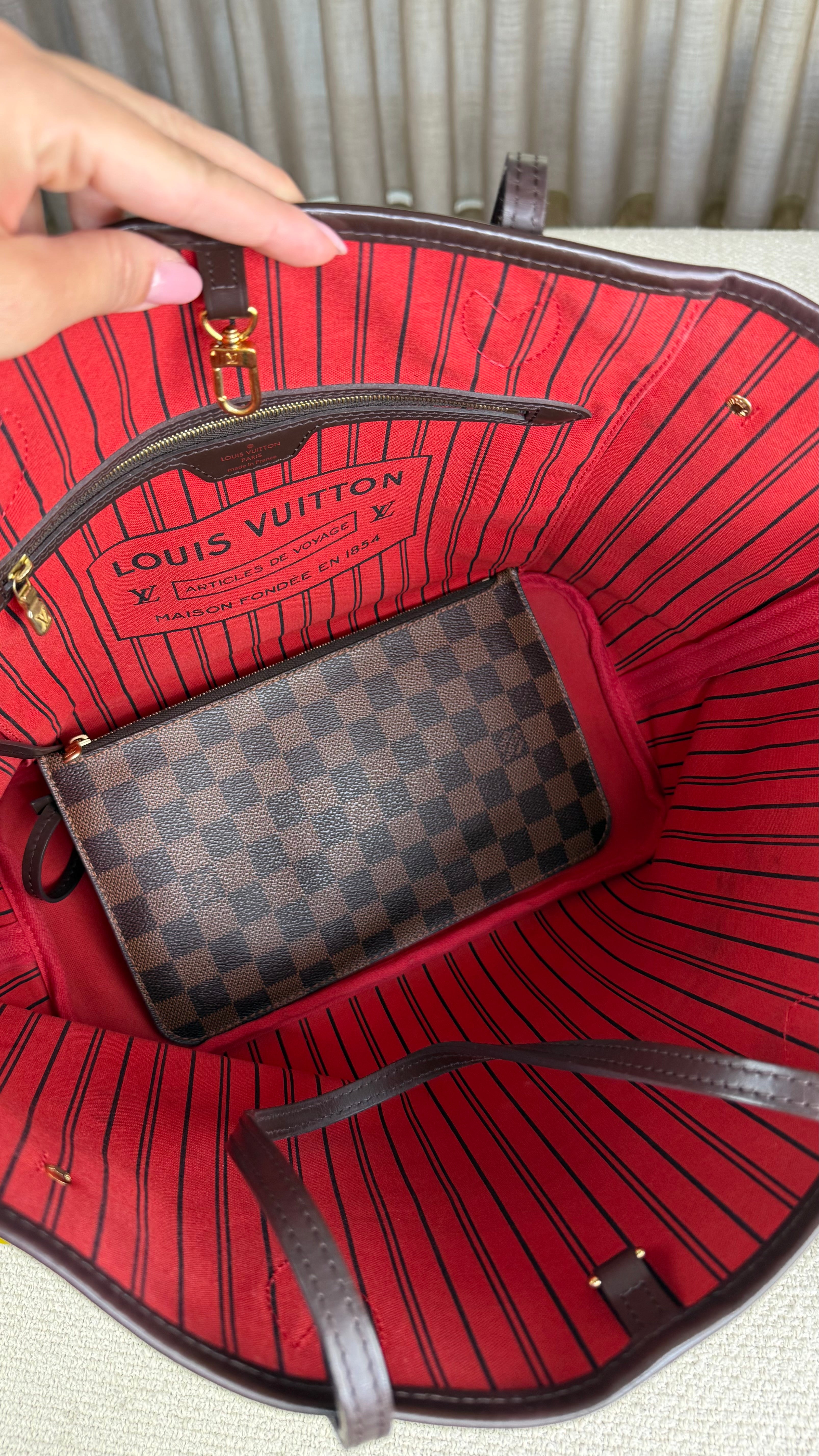 - CorPadrão Damier Ebene com interior vermelho