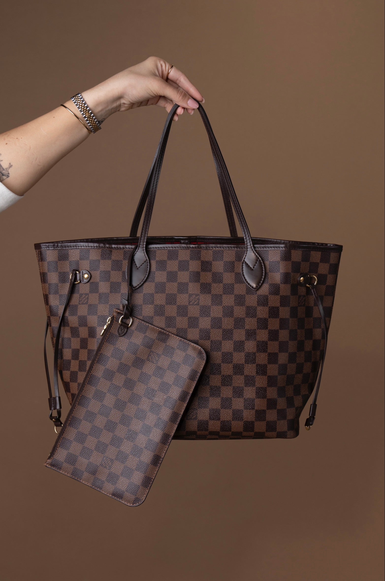 A Neverfull MM em Damier Ebene é um dos ícones mais desejados da Louis Vuitton, combinando funcionalidade e elegância em um design atemporal. Confeccionada na clássica lona canvas Damier Ebene, resistente e elegante, com acabamentos em couro marrom escuro, a bolsa é leve, espaçosa e perfeita para o dia a dia. Seu interior generoso acomoda tudo o que você precisa, e as laterais ajustáveis permitem mudar a forma da bolsa, de acordo com seu estilo. Acompanha uma pochette removível que pode ser usada separadamente como clutch.