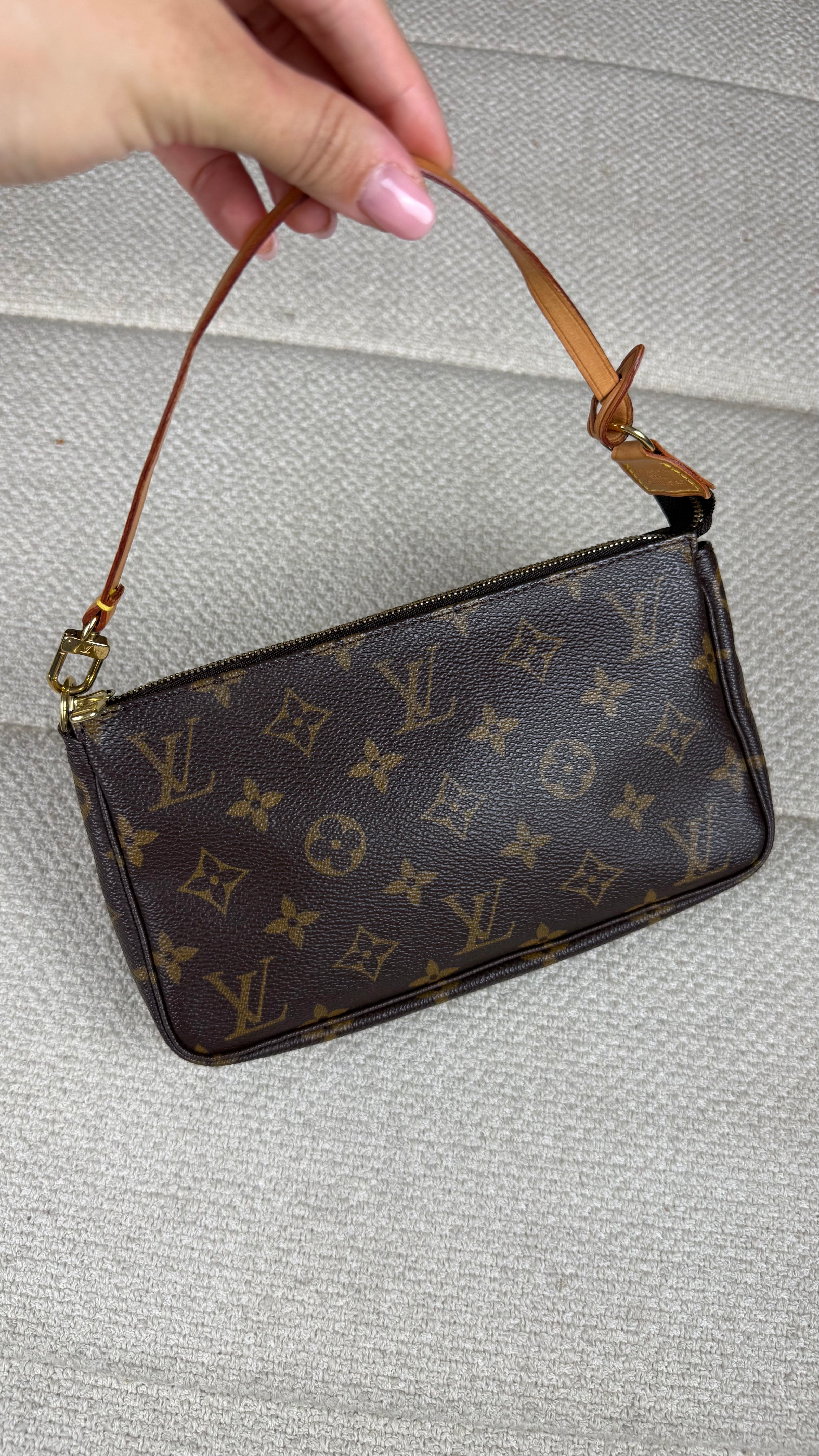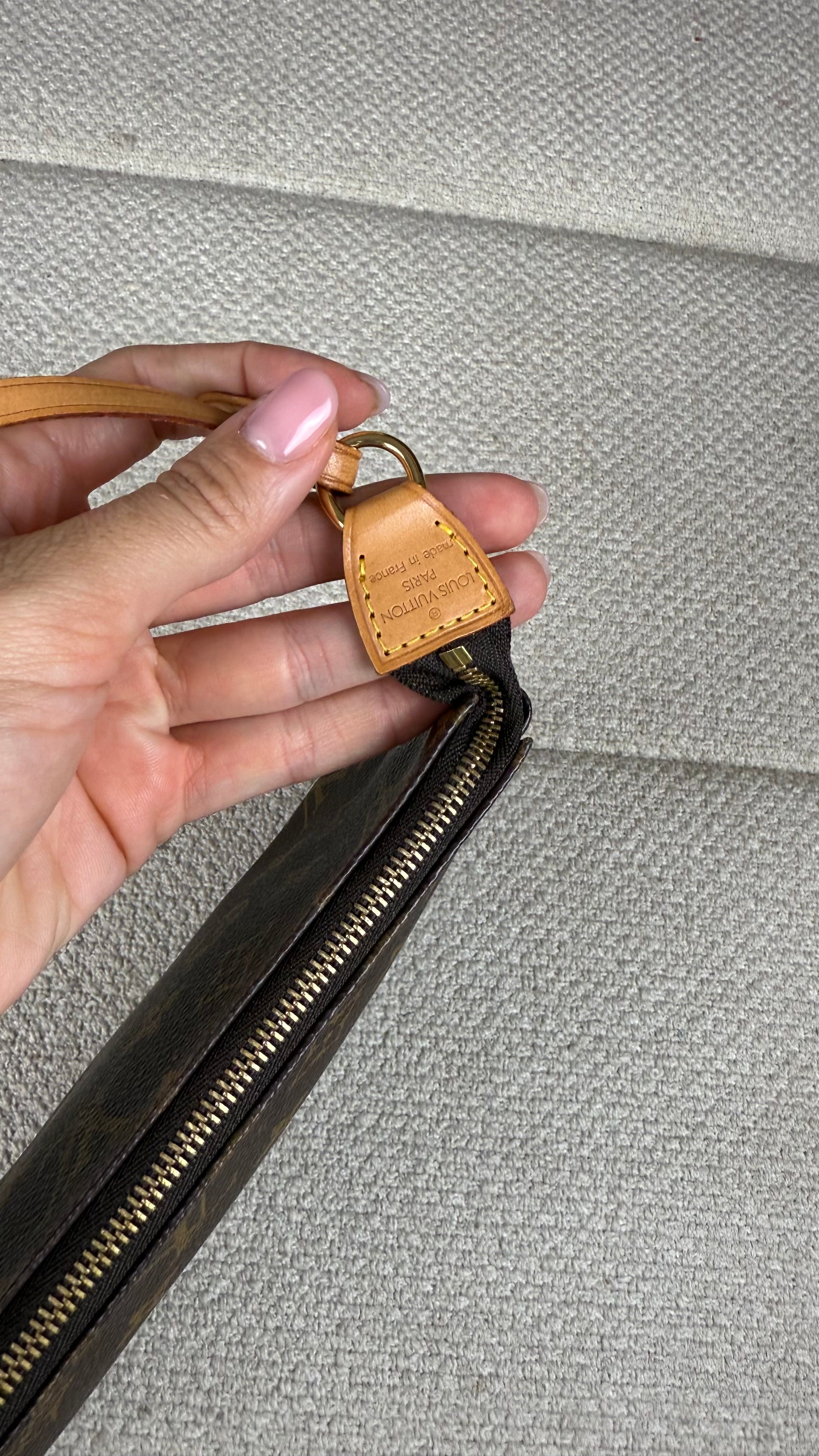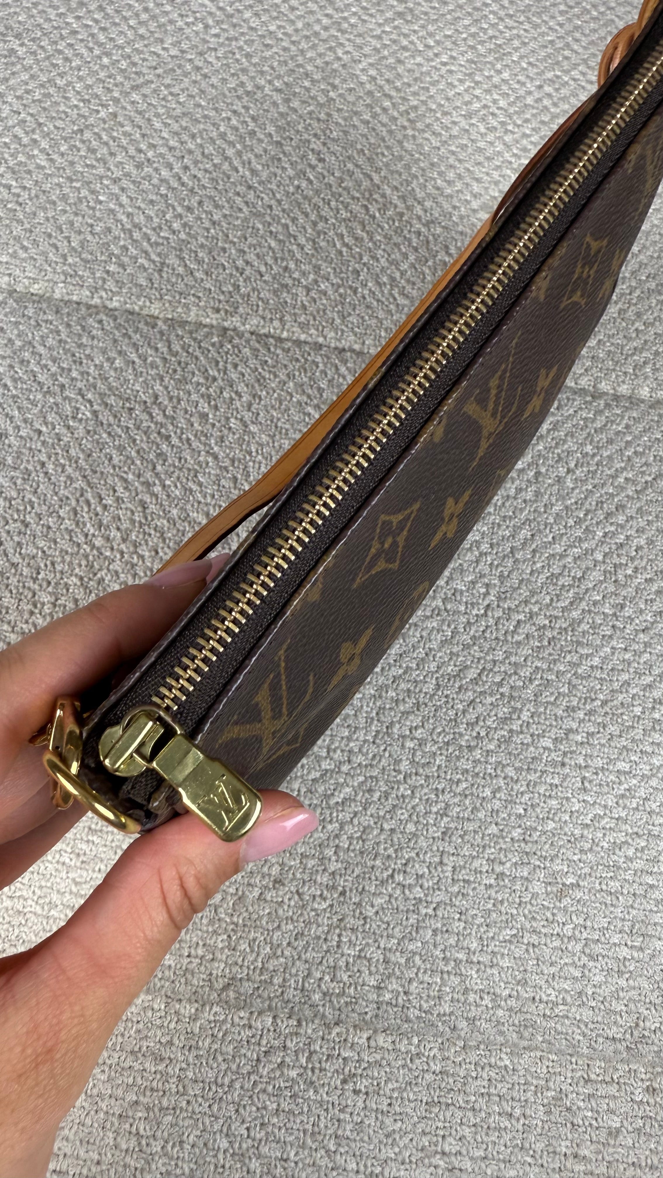 Essa é a icônica Louis Vuitton Pochette Accessoires em canvas Monogram, um dos modelos mais clássicos e versáteis da maison francesa.