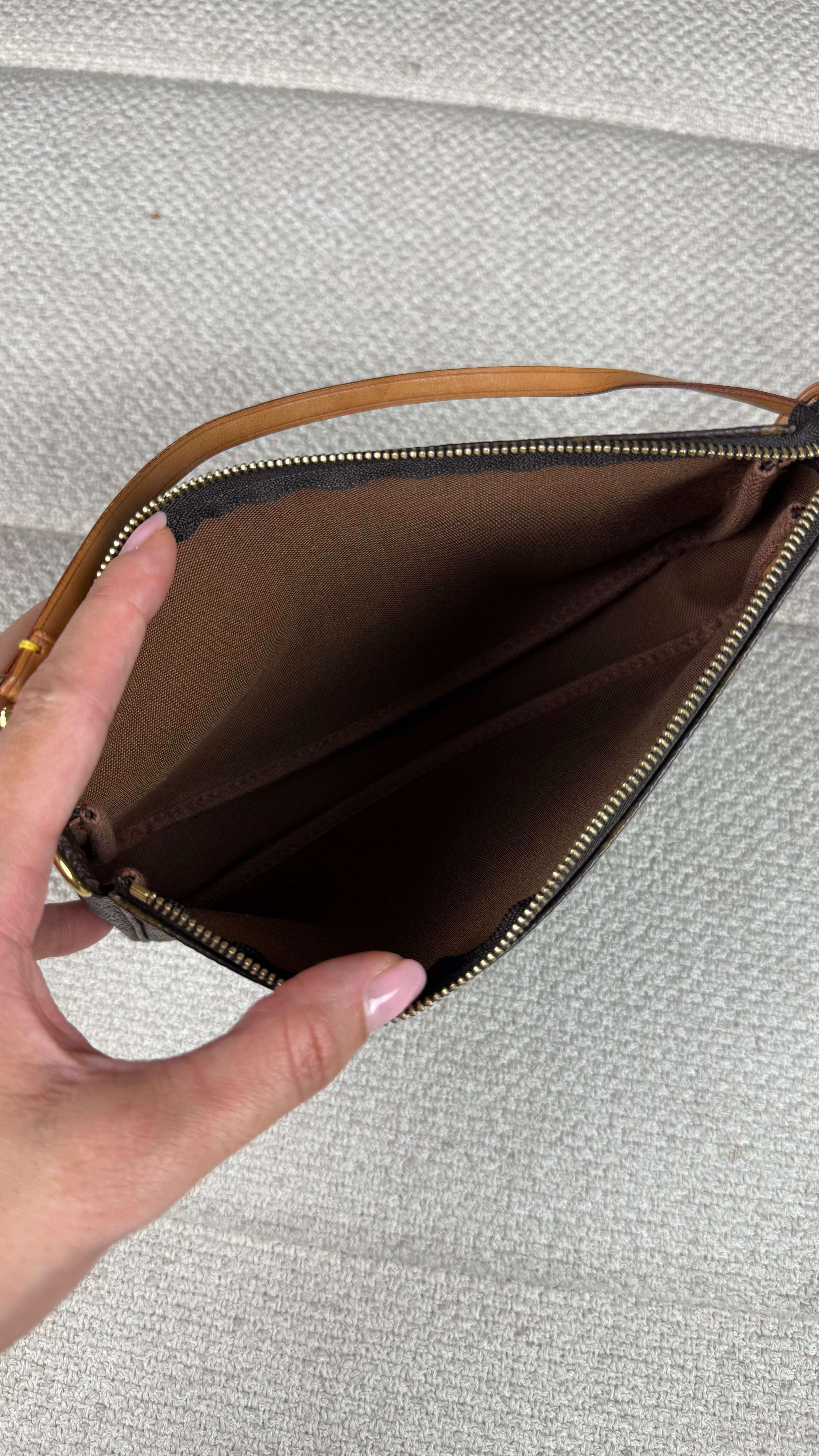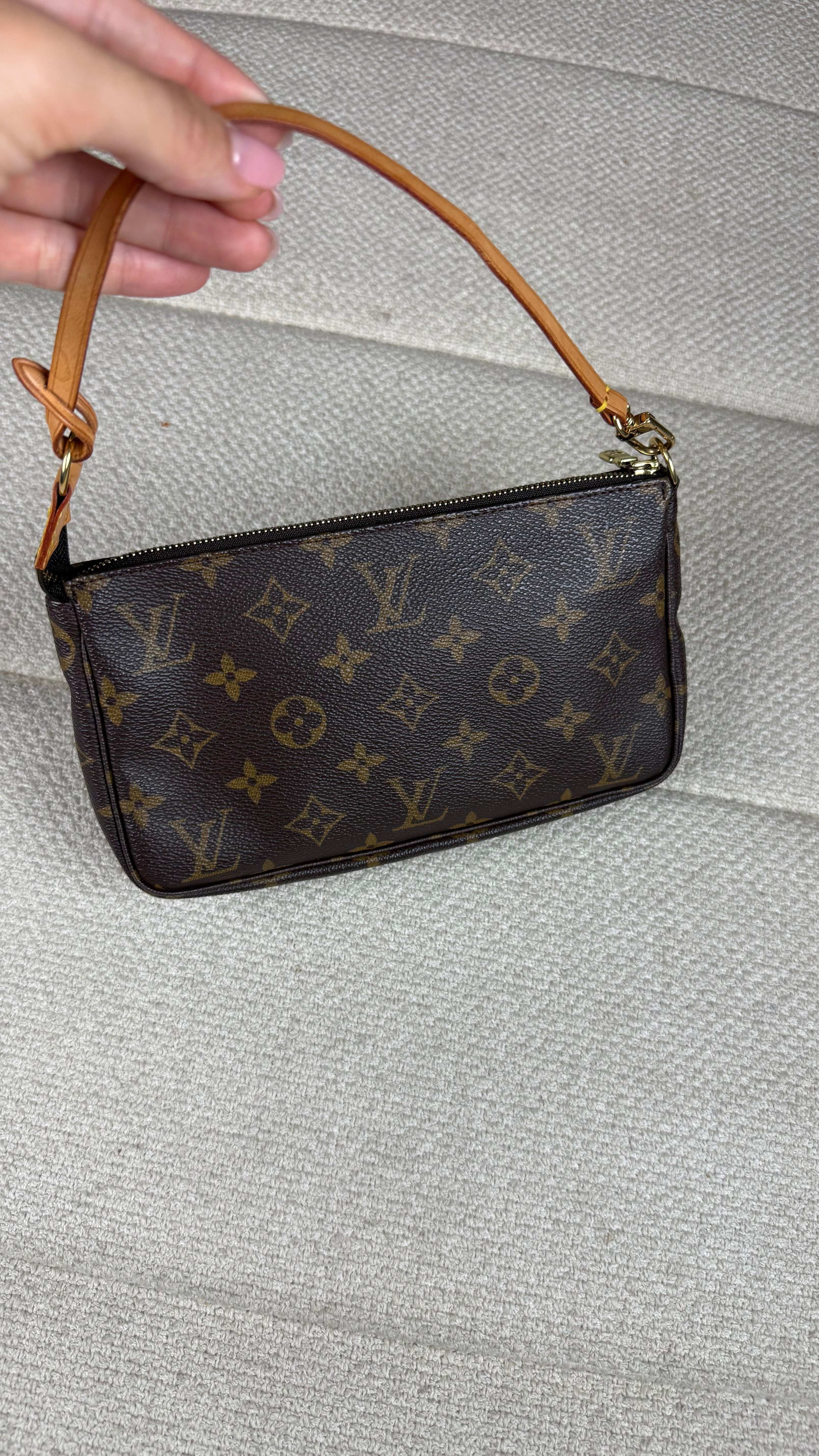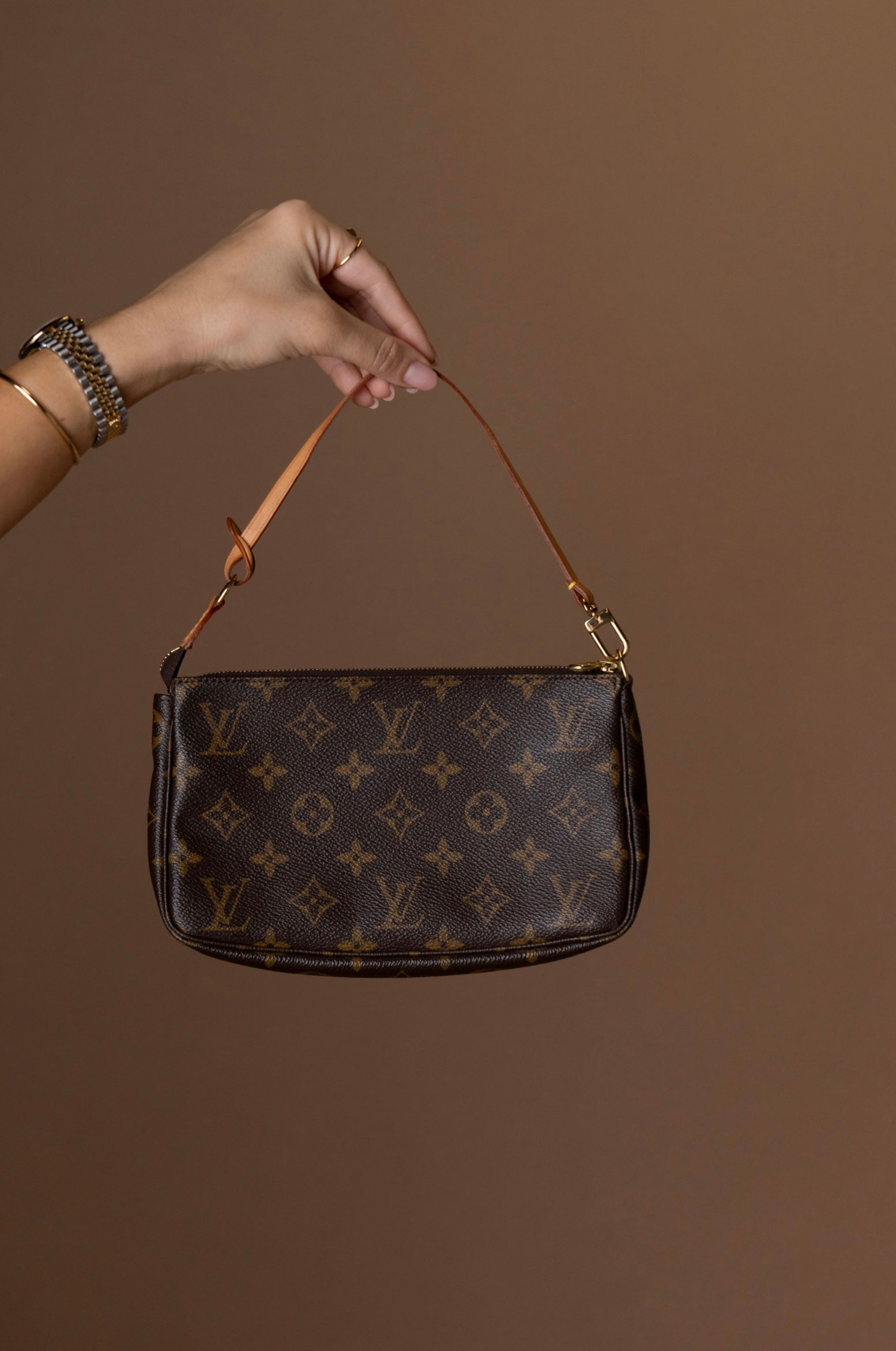 Essa é a icônica Louis Vuitton Pochette Accessoires em canvas Monogram, um dos modelos mais clássicos e versáteis da maison francesa.
