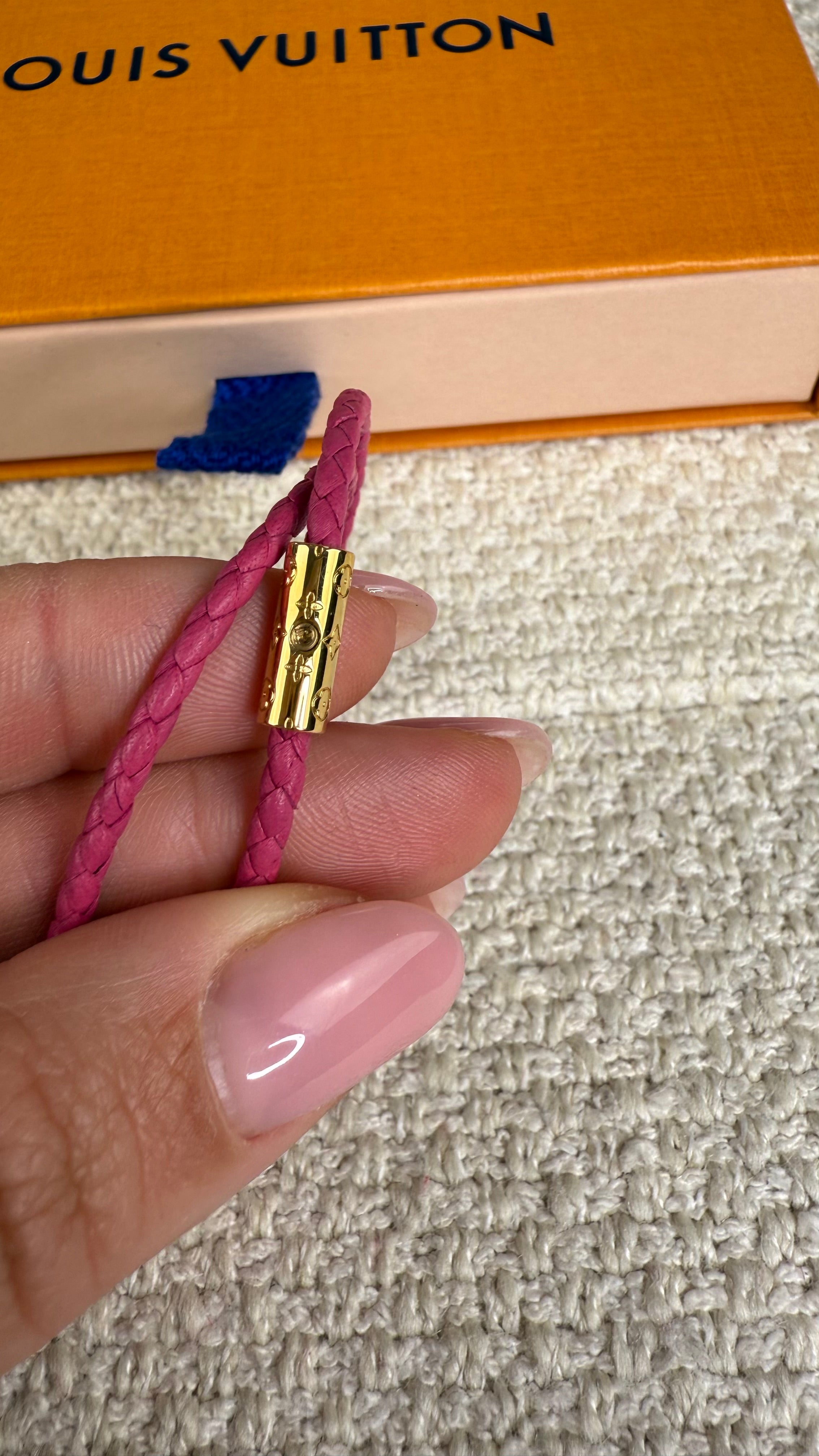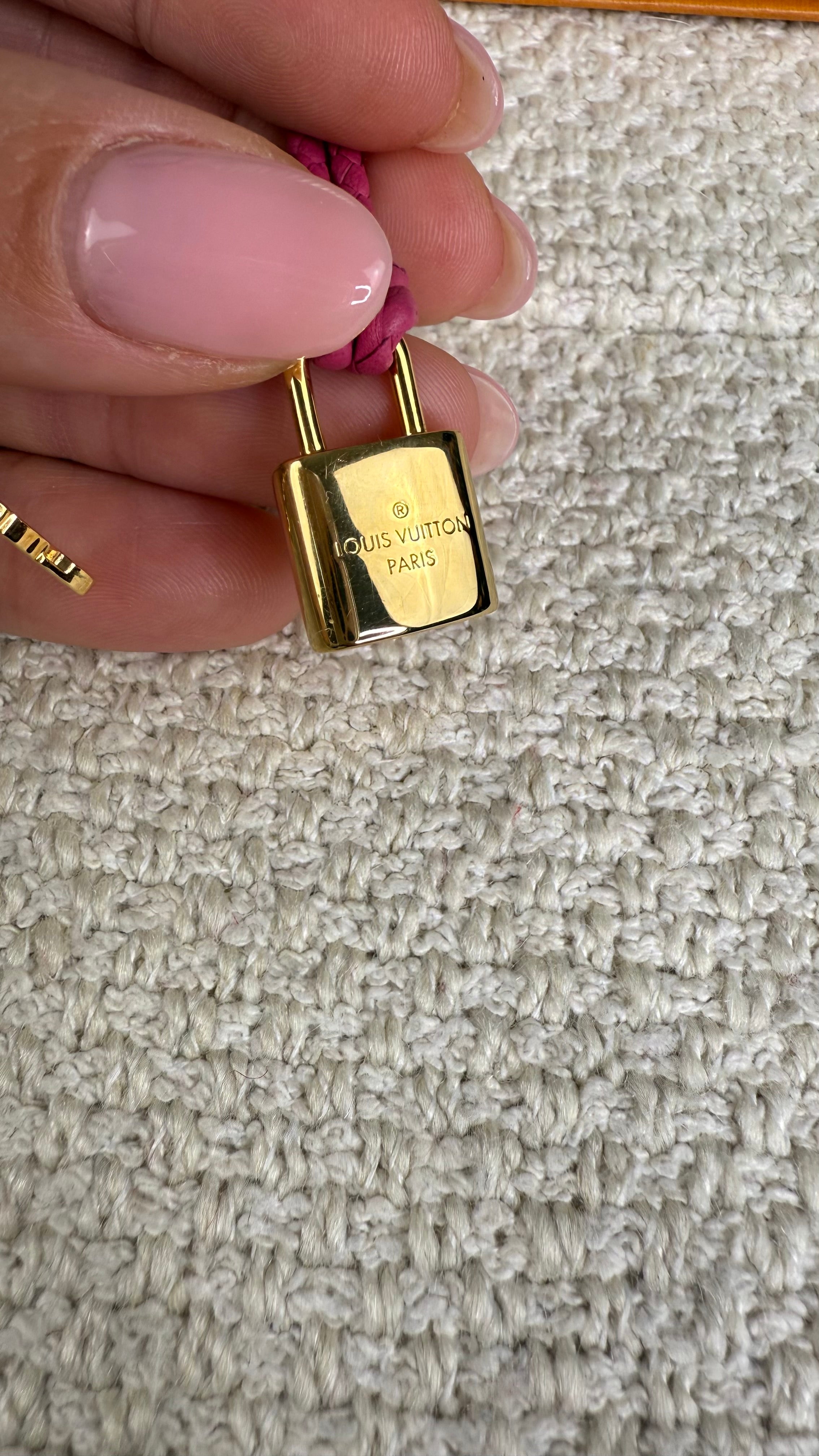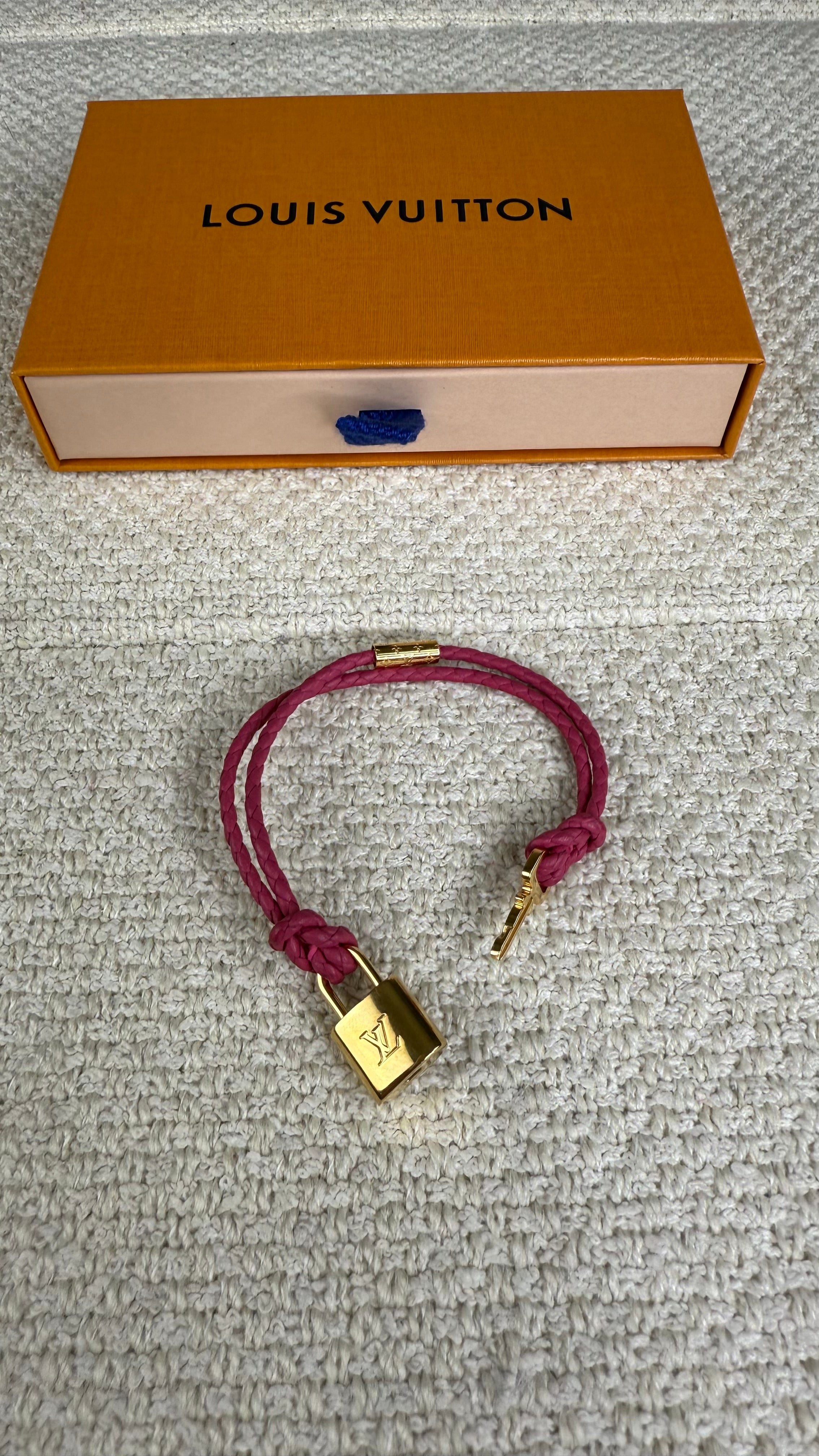 A pulseira LV Padlock da Louis Vuitton é um acessório sofisticado que combina o legado da Maison com um design contemporâneo. Inspirada nos cadeados utilizados nos icônicos baús da marca, esta pulseira destaca-se pelo seu fecho funcional em forma de cadeado, frequentemente acompanhado de uma chave removível.