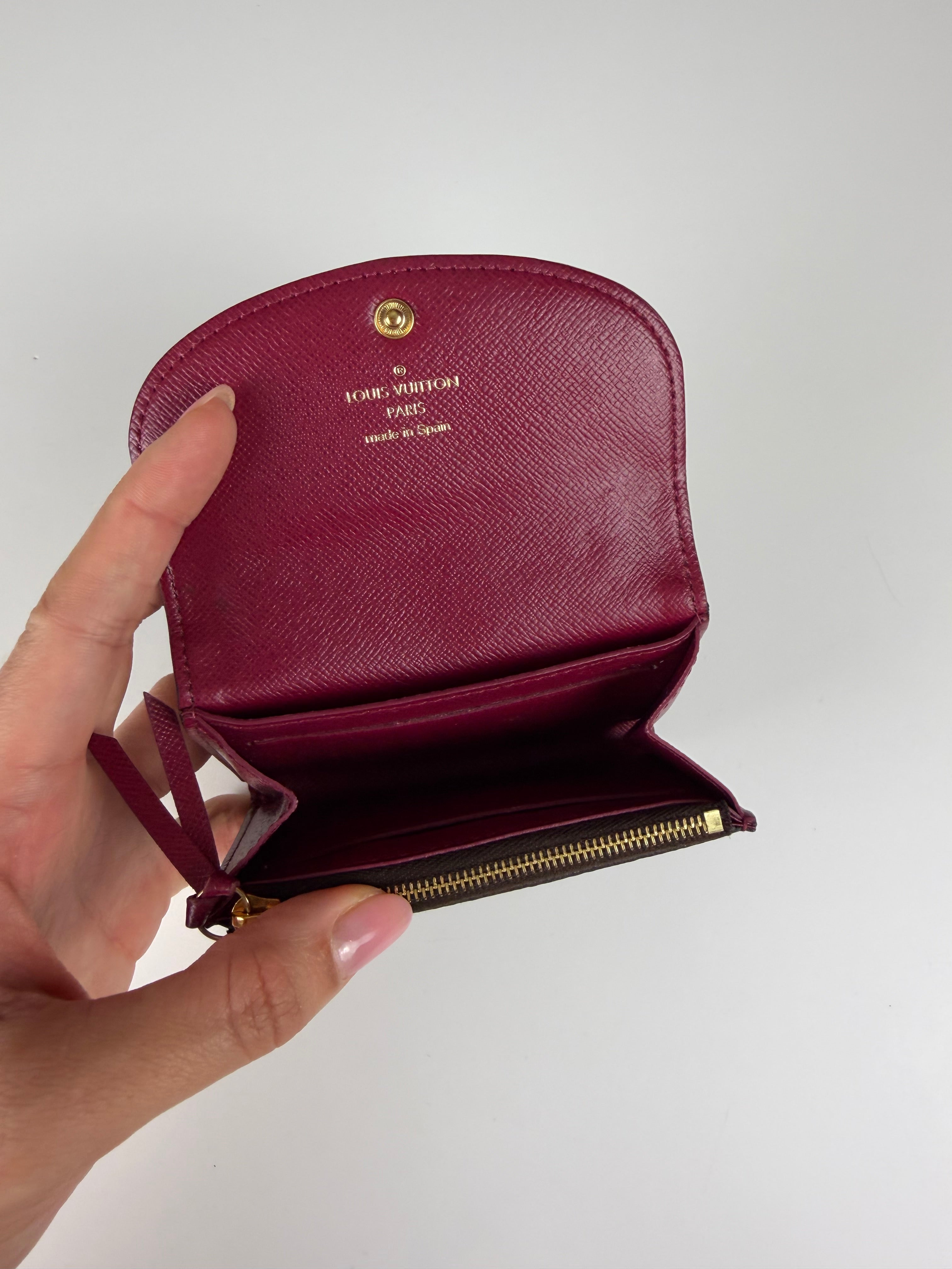 Compacta, feminina e icónica — a Rosalie Coin Purse da Louis Vuitton combina o prestigiado canvas Monogram com detalhes delicados em couro rosa escuro (framboesa). O seu design minimalista oferece funcionalidade sem perder o charme clássico da maison.