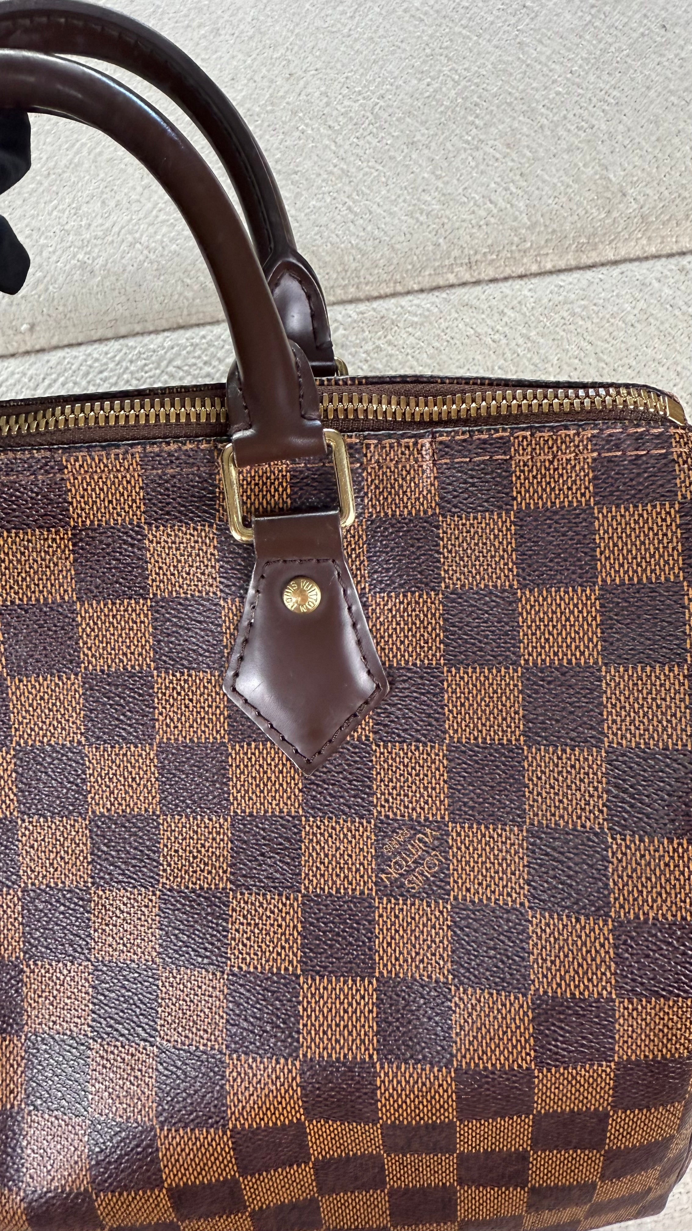 Clássica, elegante e intemporal — a Louis Vuitton Speedy Bandoulière 30 é uma das malas mais icónicas da marca. Fabricada em lona revestida Damier Ebene com acabamentos em couro natural de vaca e ferragens douradas, esta mala combina luxo e praticidade em cada detalhe.