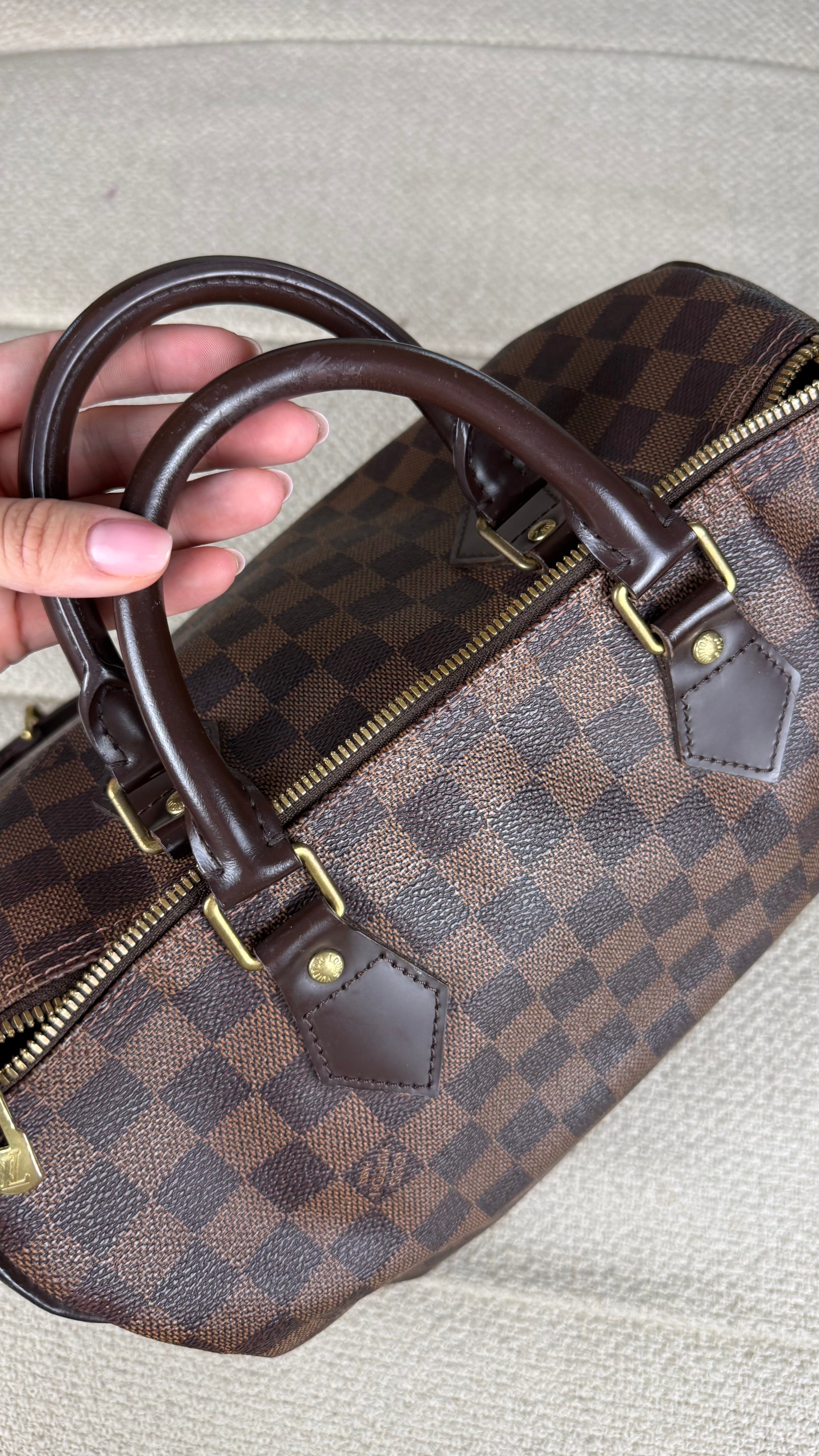 Clássica, elegante e intemporal — a Louis Vuitton Speedy Bandoulière 30 é uma das malas mais icónicas da marca. Fabricada em lona revestida Damier Ebene com acabamentos em couro natural de vaca e ferragens douradas, esta mala combina luxo e praticidade em cada detalhe.