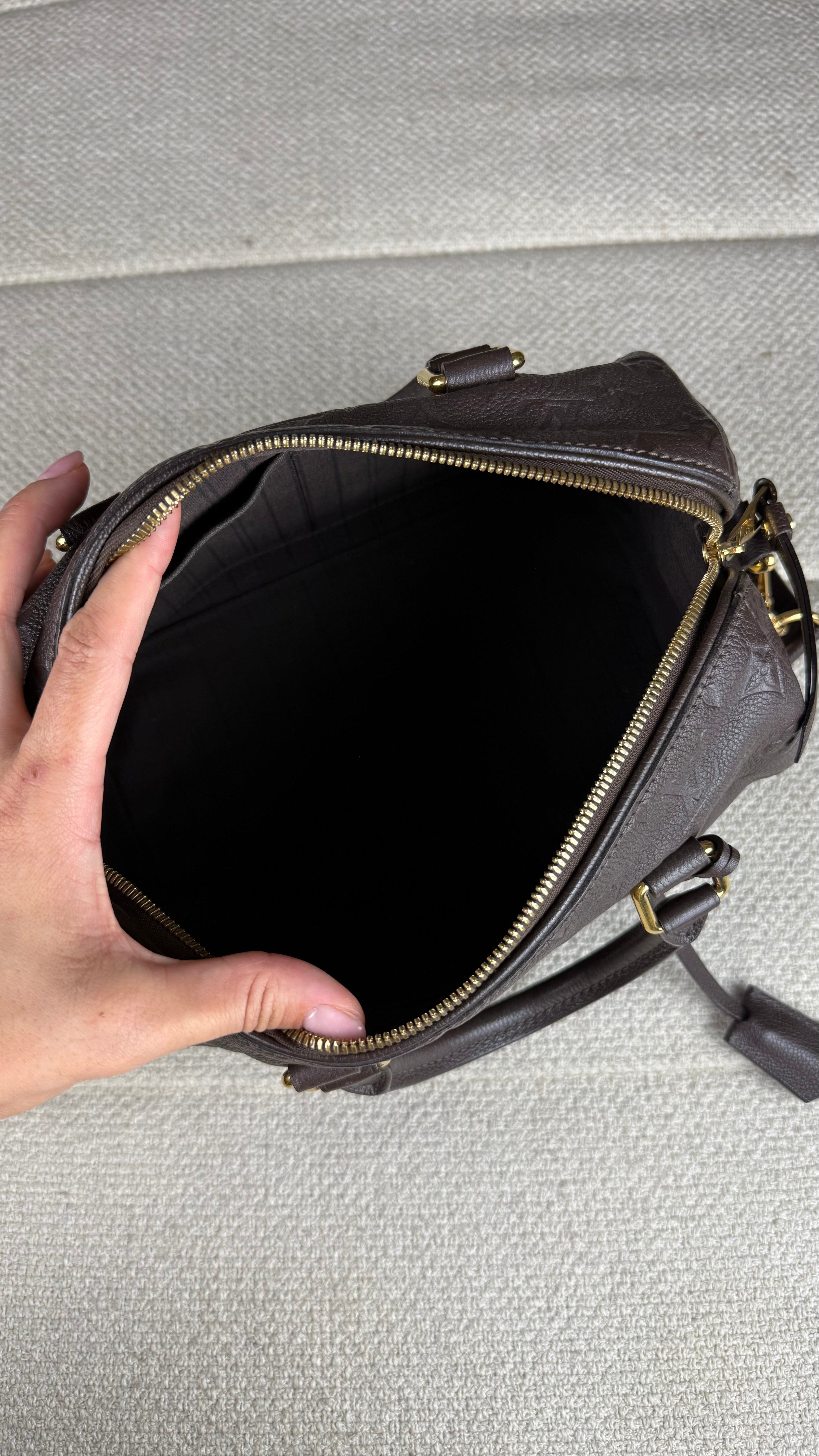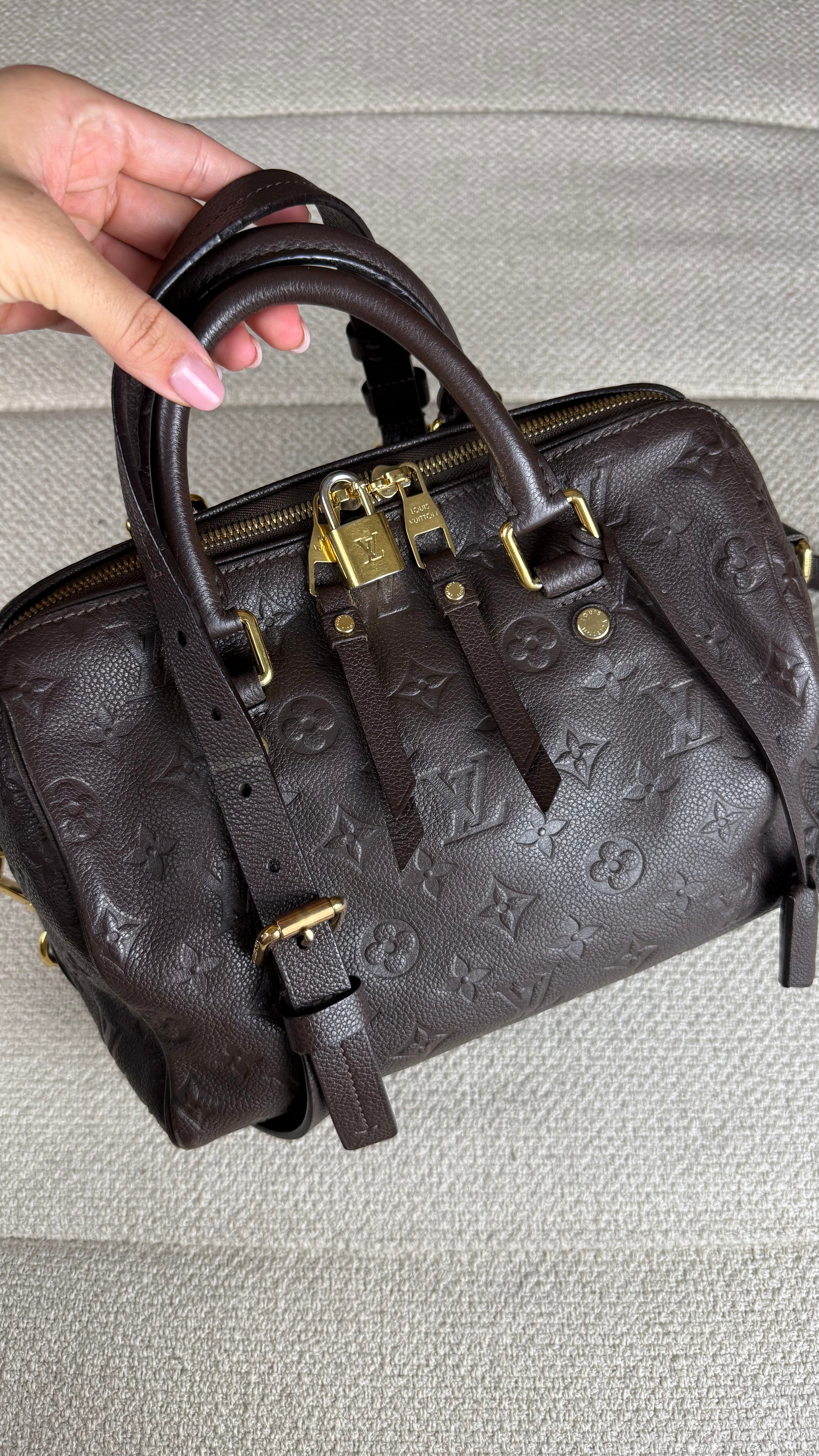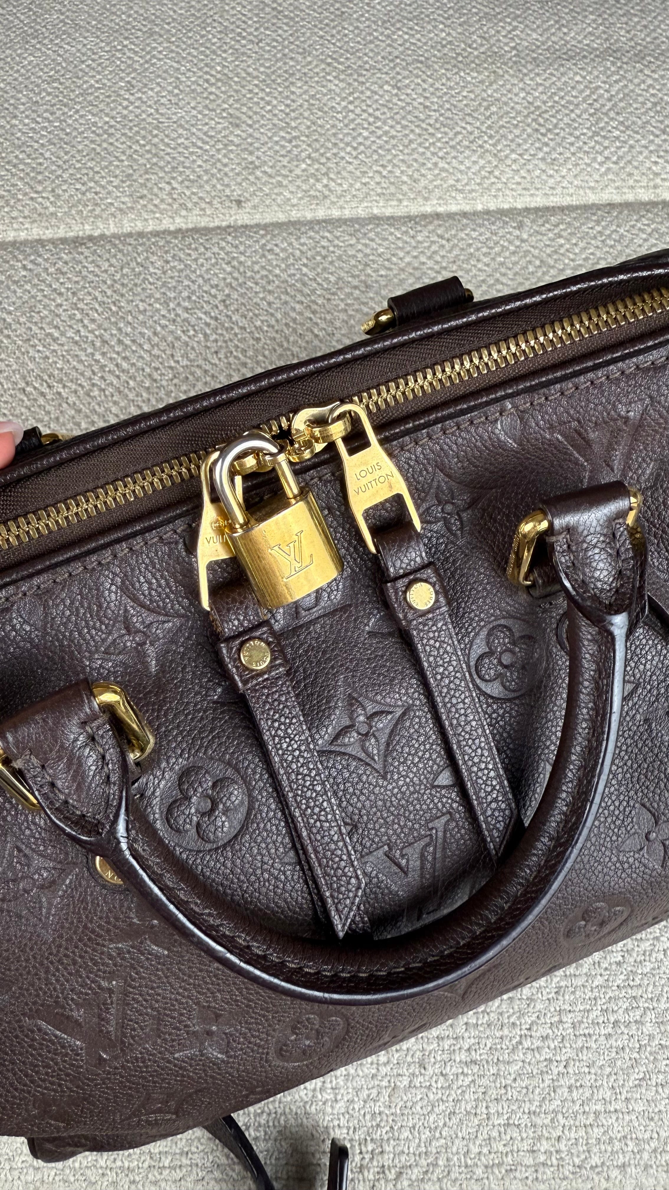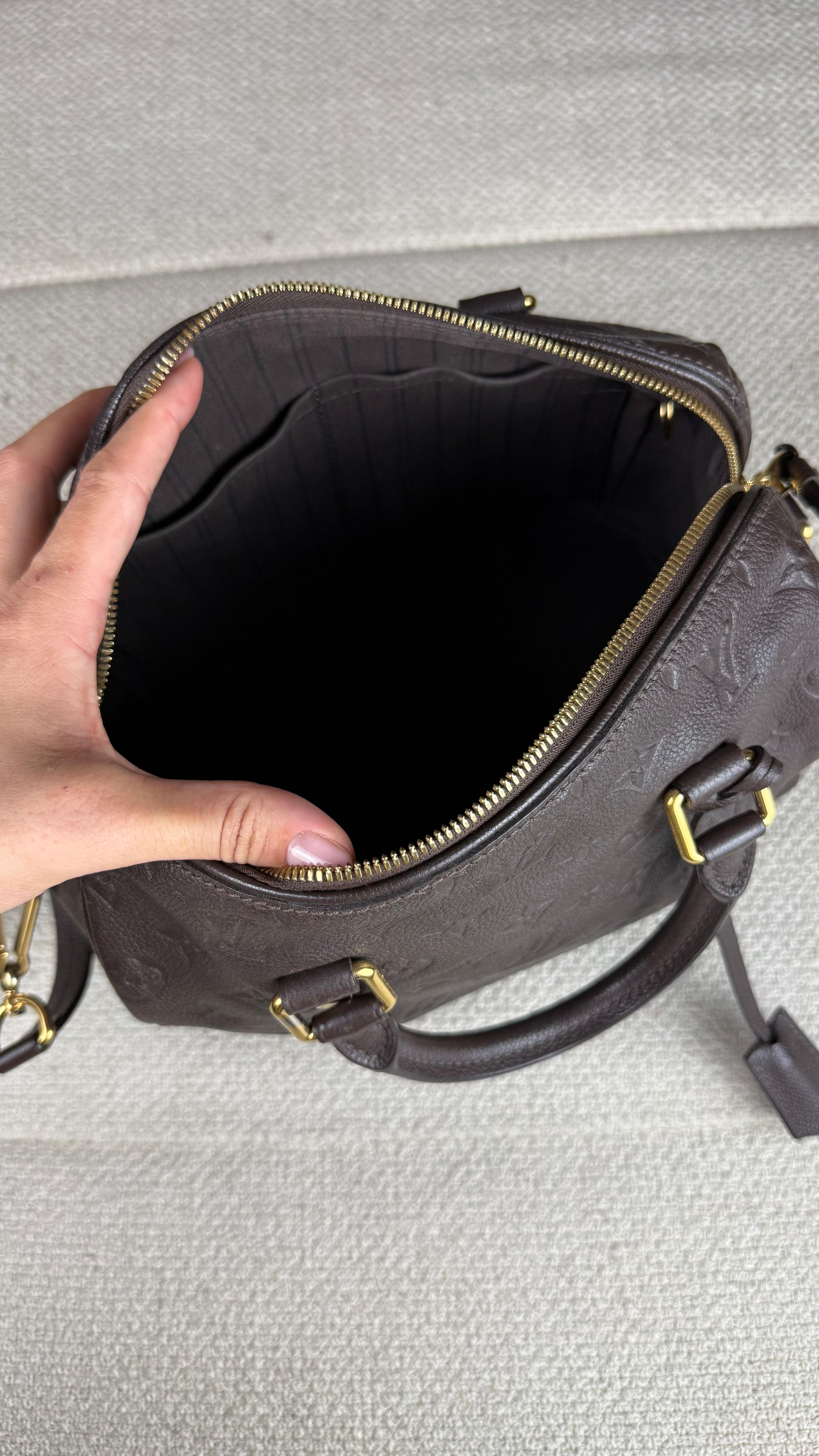 Ícone da Louis Vuitton, a Speedy 25 Bandoulière é o equilíbrio perfeito entre elegância atemporal e praticidade. Confeccionada em couro Monogram Empreinte — material premium com o clássico monograma LV e flores em relevo — este modelo combina luxo discreto com resistência e versatilidade.