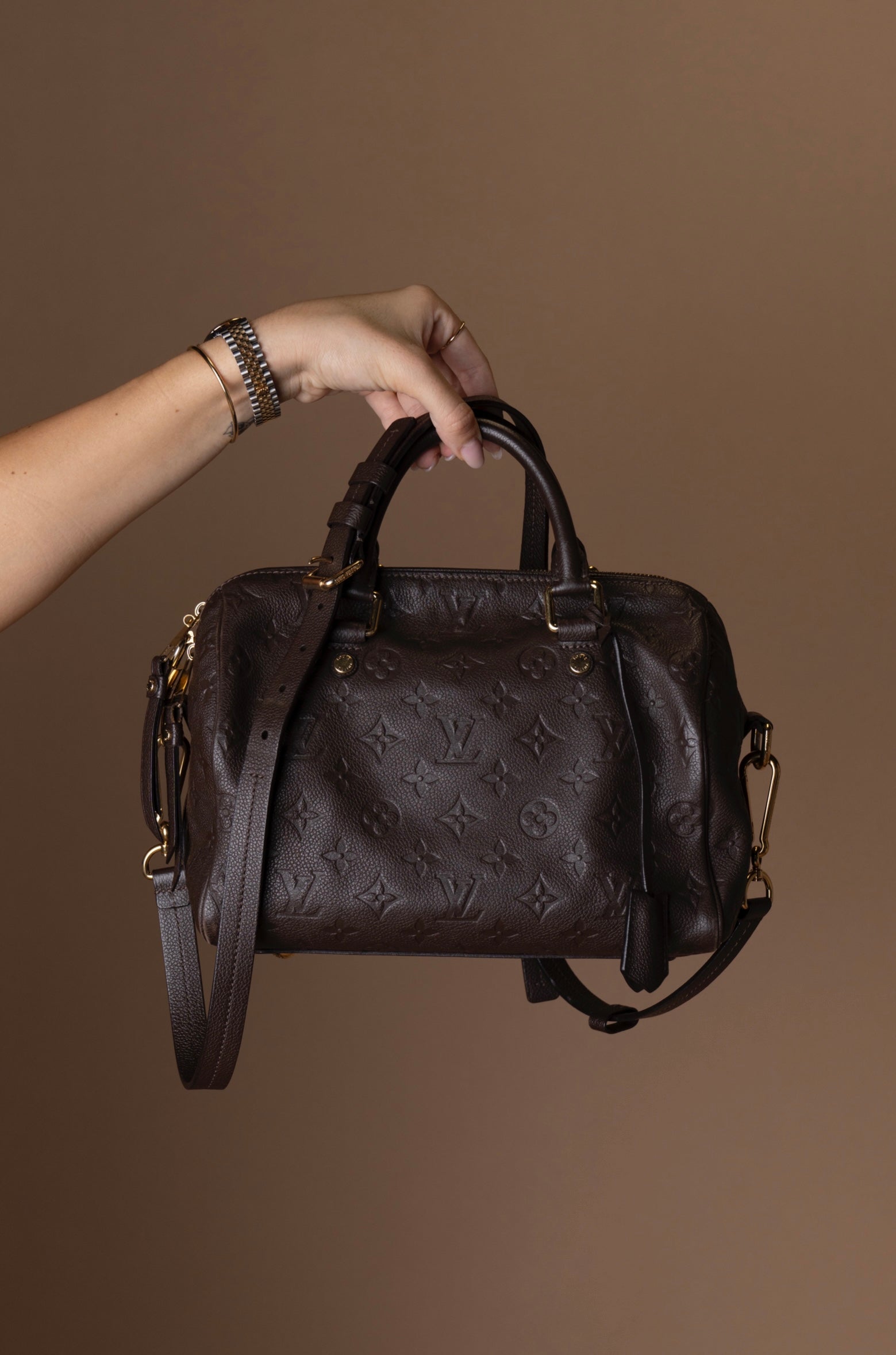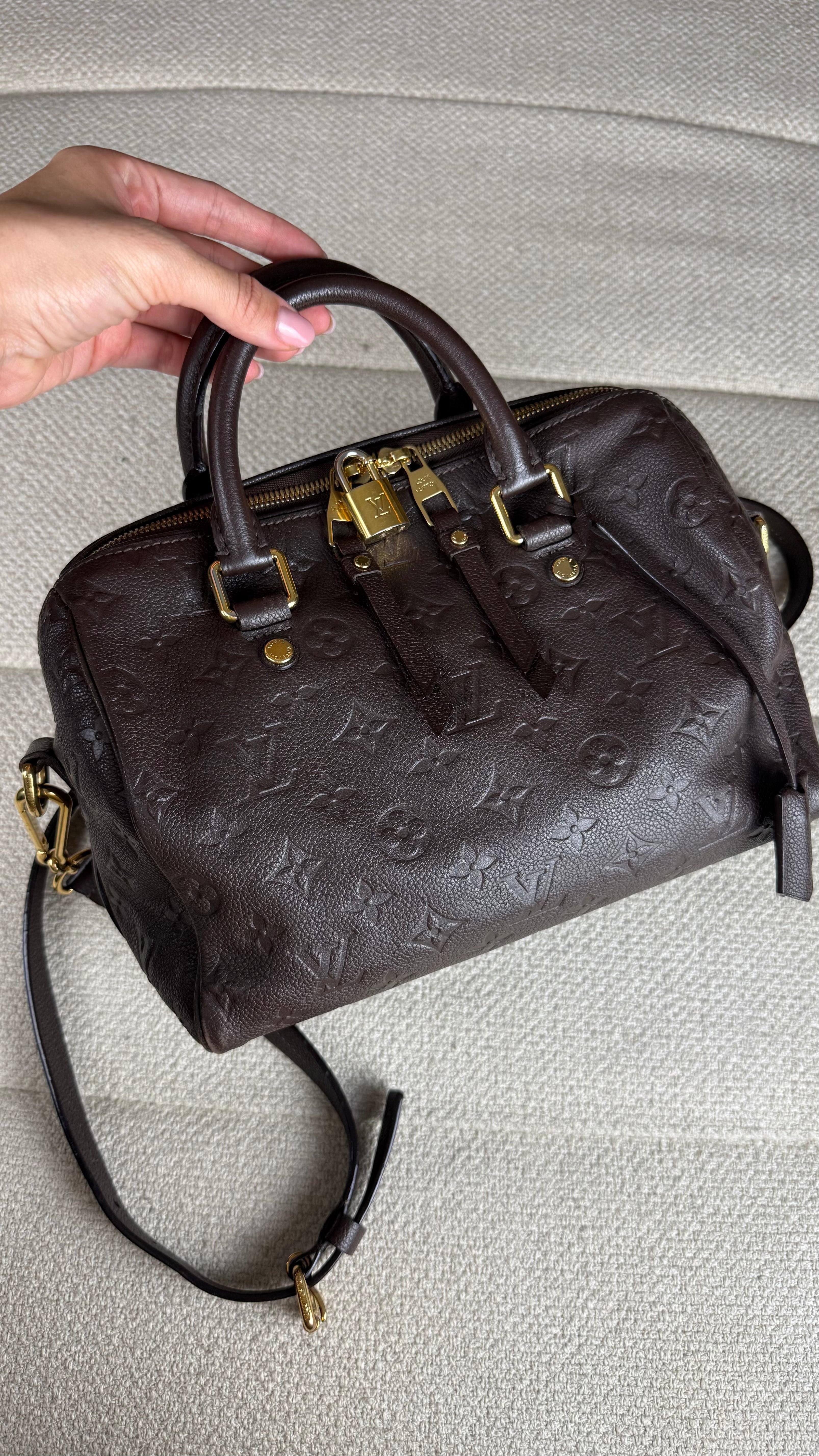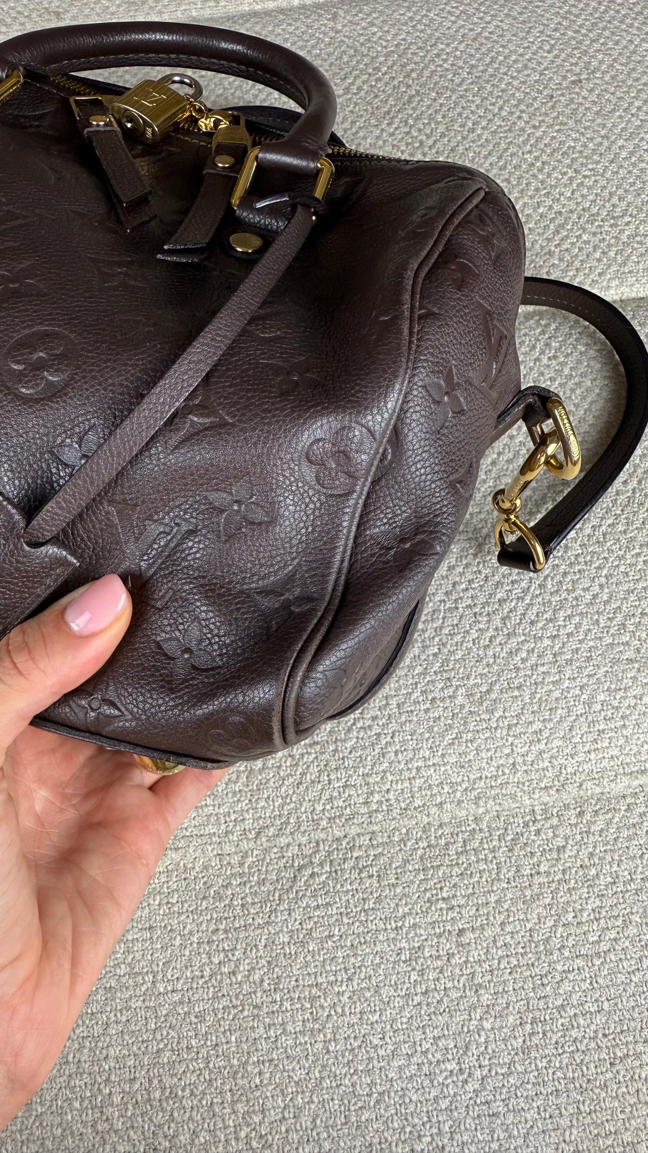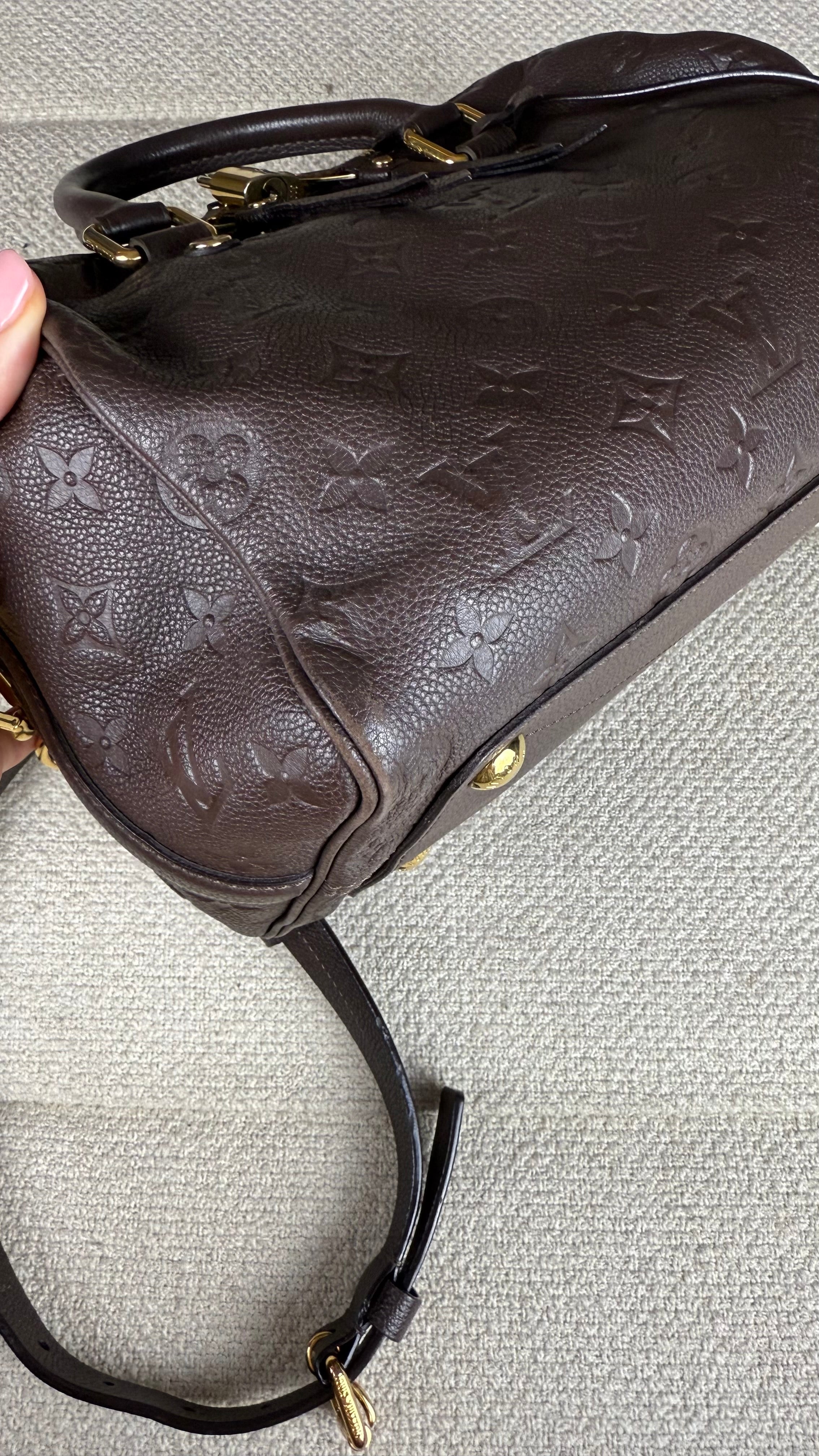 Ícone da Louis Vuitton, a Speedy 25 Bandoulière é o equilíbrio perfeito entre elegância atemporal e praticidade. Confeccionada em couro Monogram Empreinte — material premium com o clássico monograma LV e flores em relevo — este modelo combina luxo discreto com resistência e versatilidade.