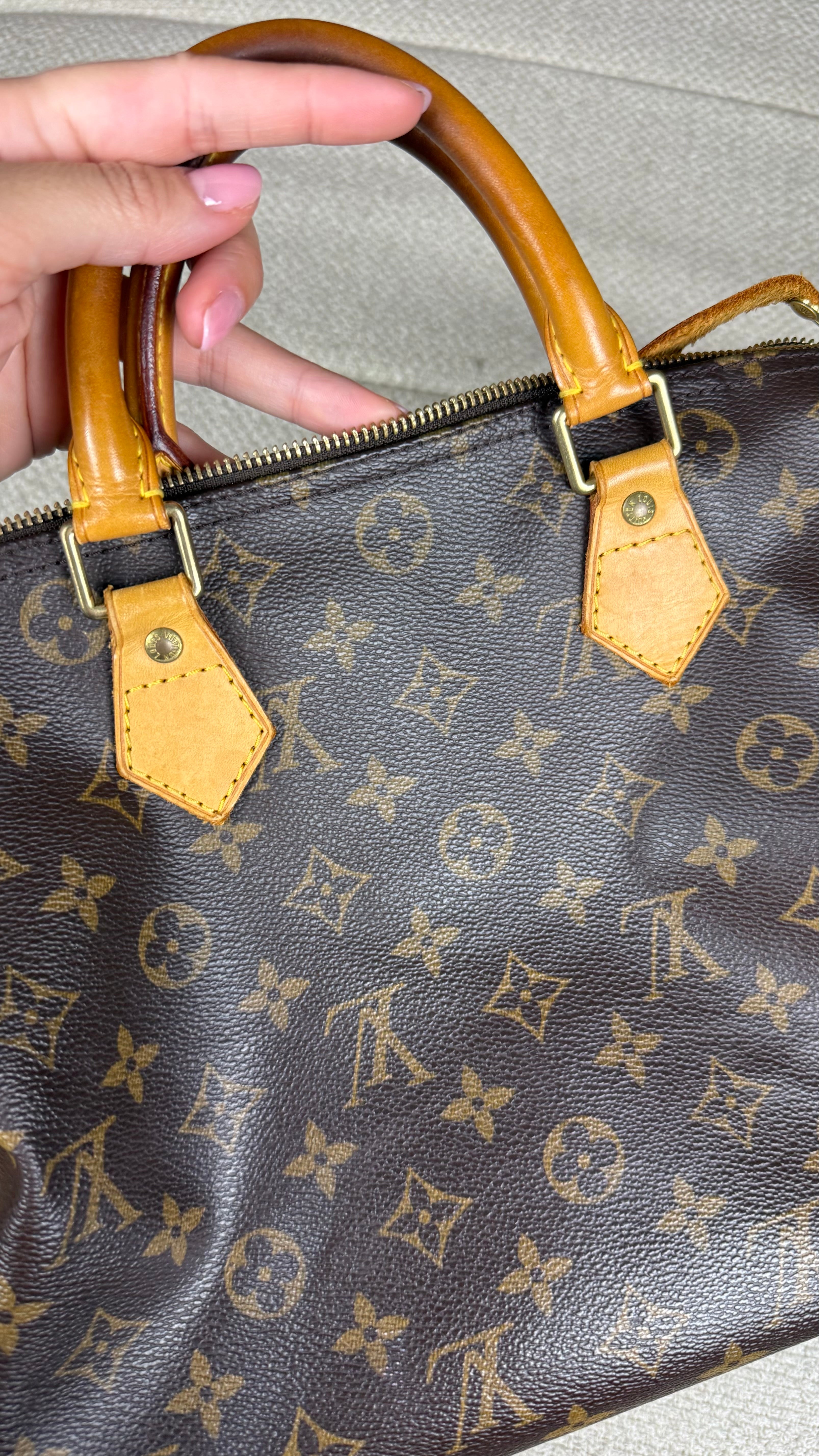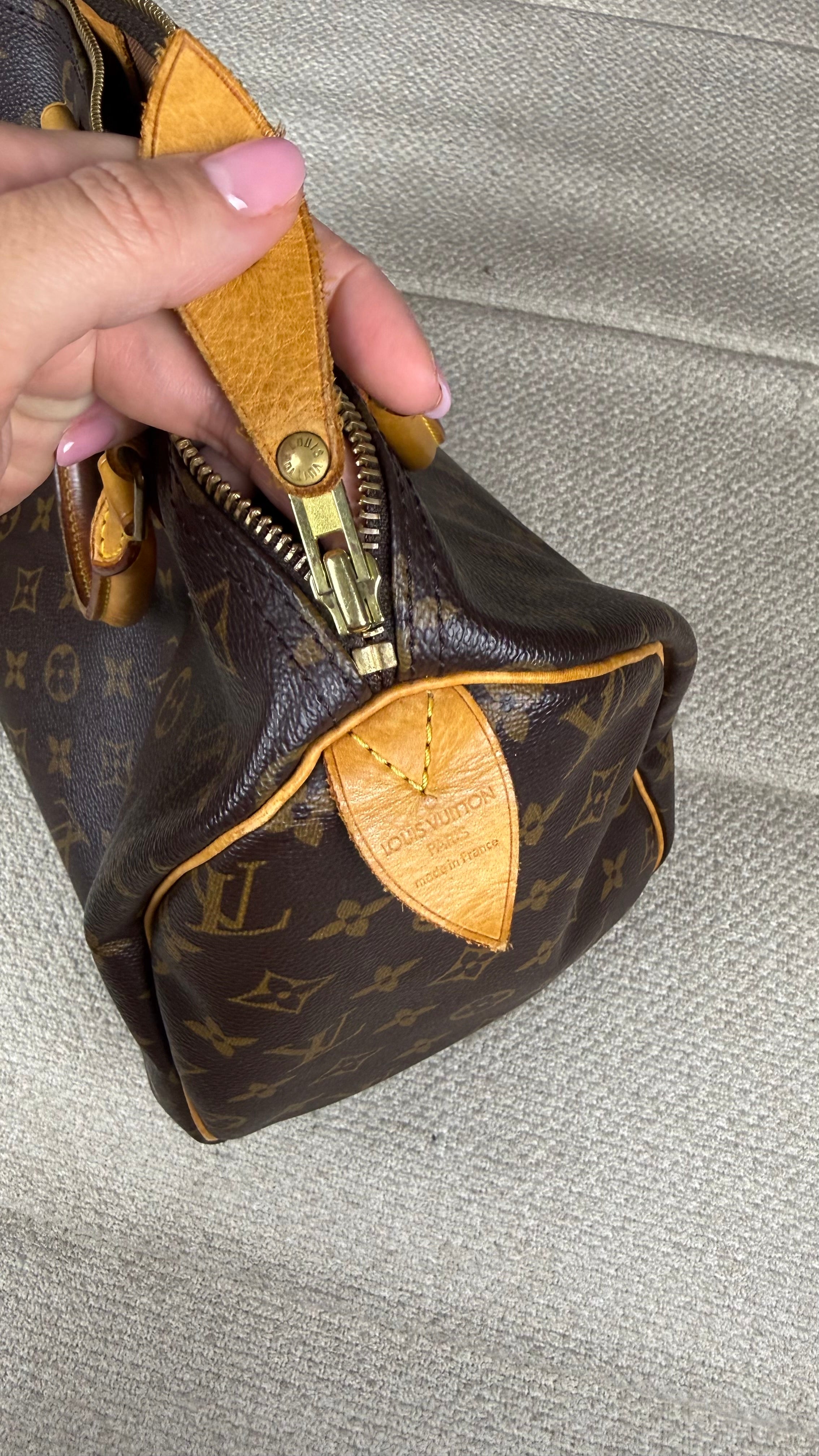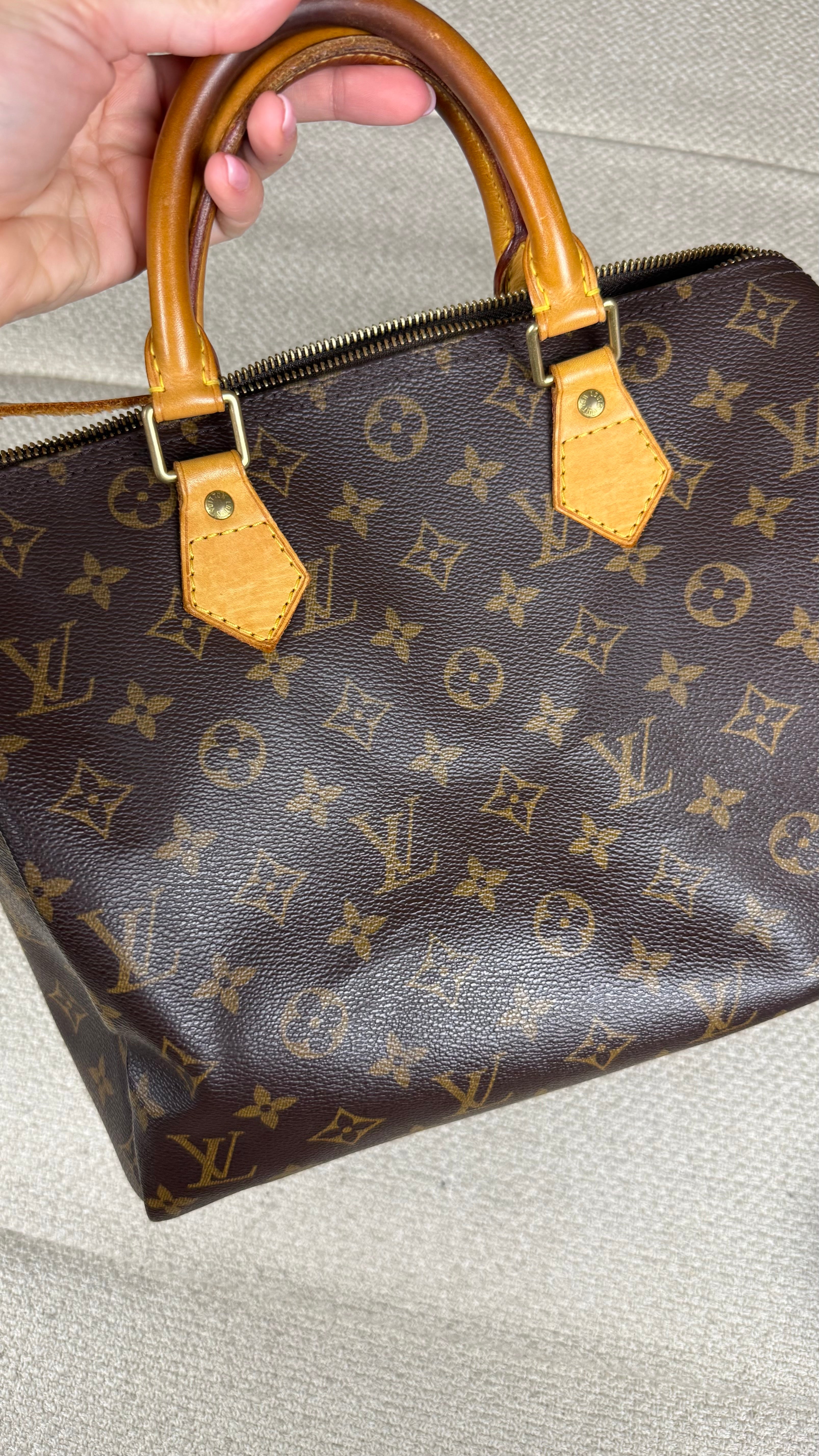 A Speedy 30 é um verdadeiro clássico da Louis Vuitton, símbolo de elegância atemporal e praticidade. Na versão vintage com canvas Monogram, a bolsa traz o charme único das peças com história, unindo tradição e estilo icônico da maison francesa.