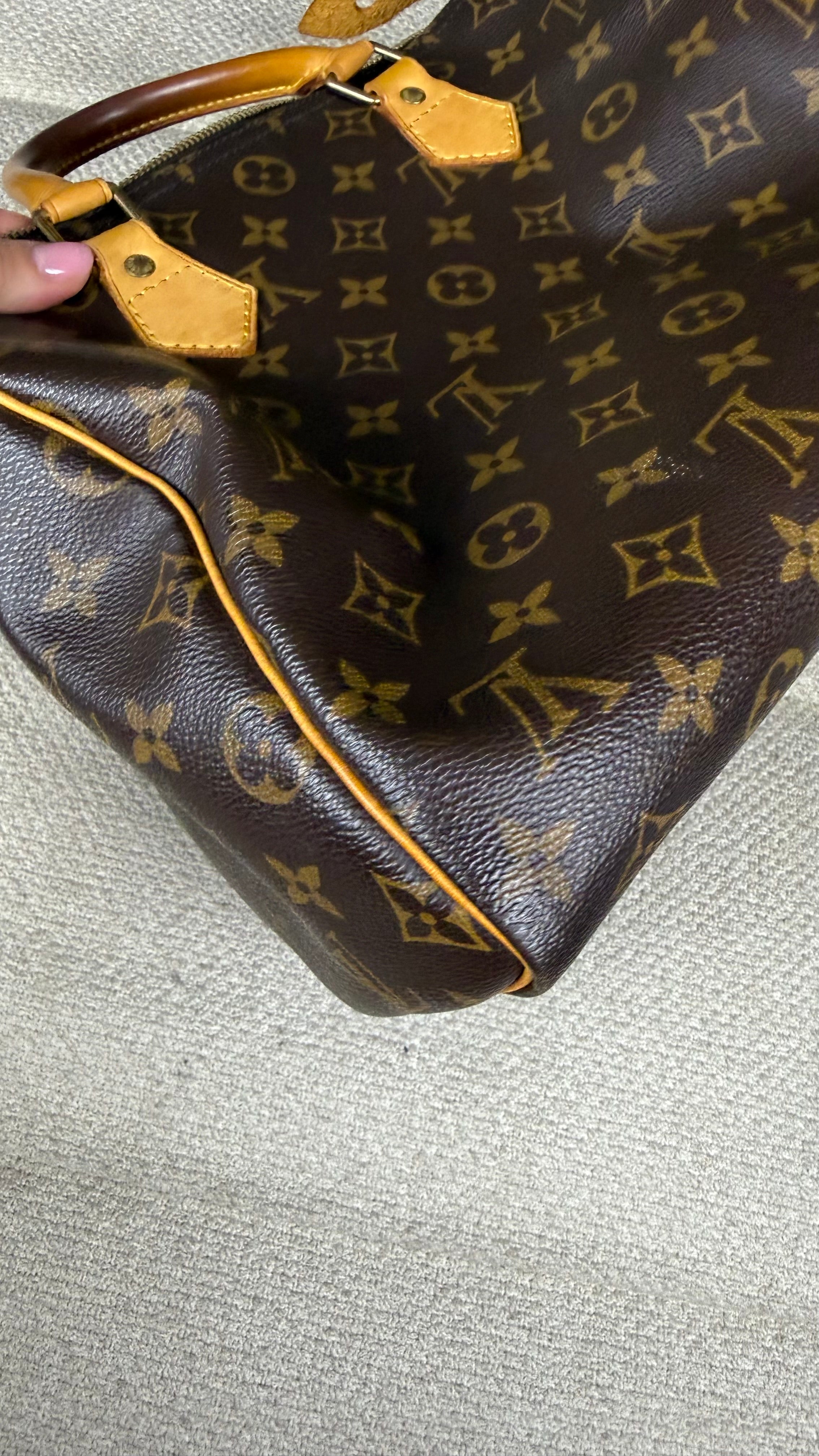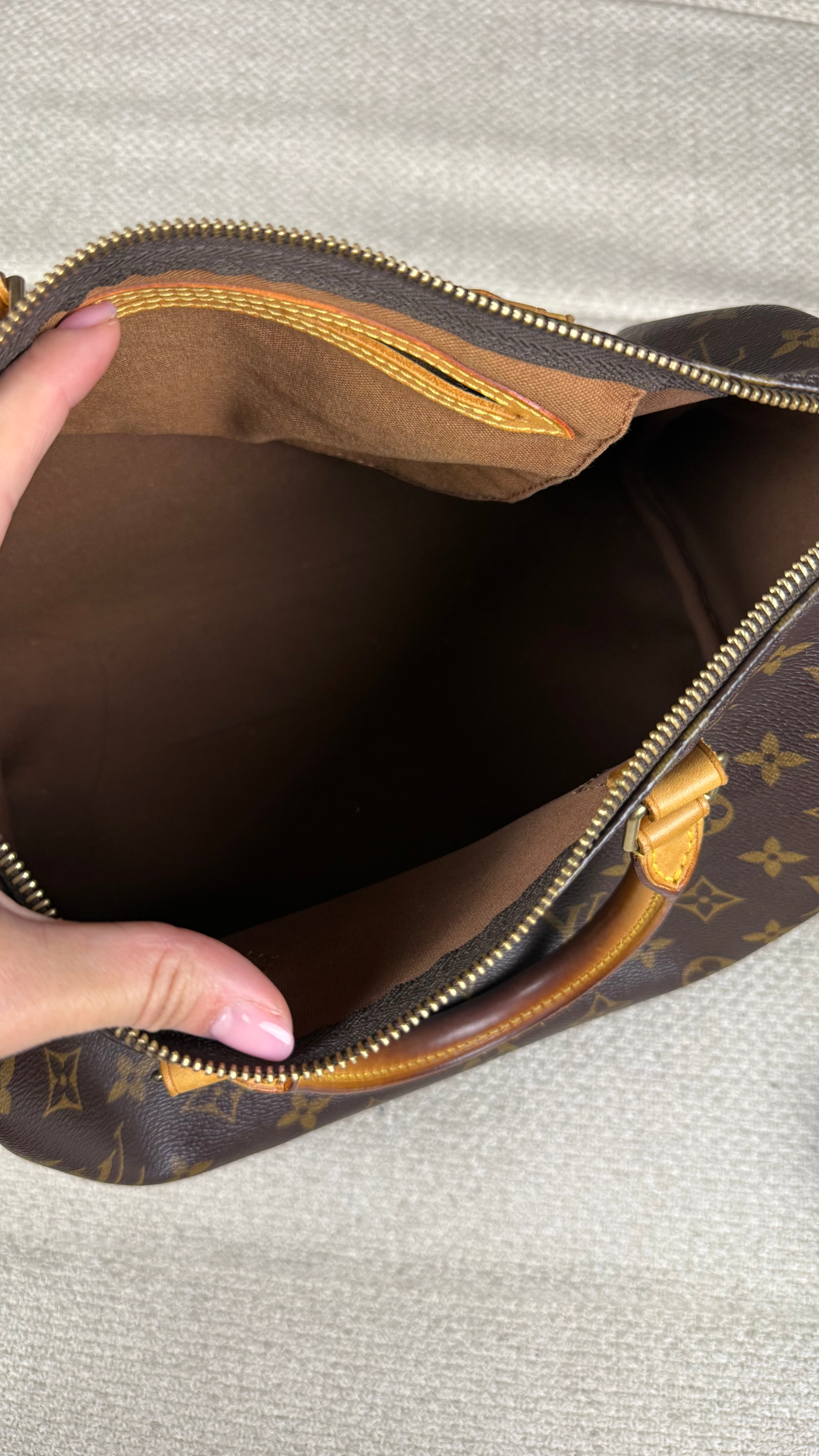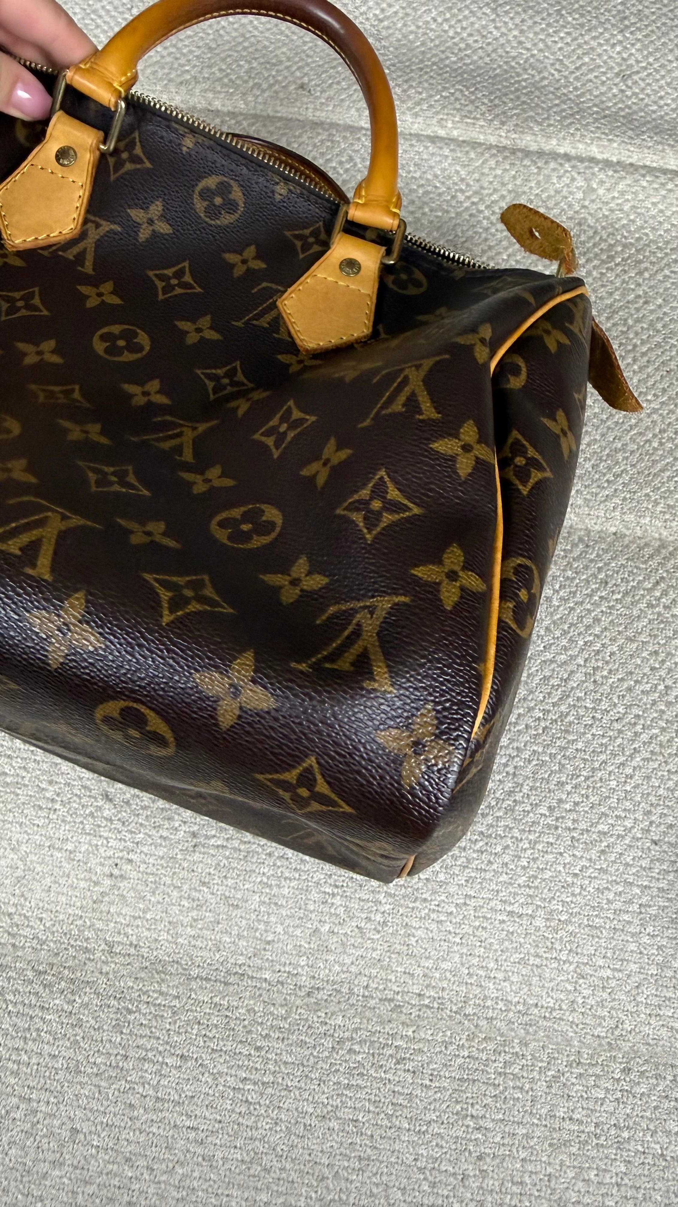 A Speedy 30 é um verdadeiro clássico da Louis Vuitton, símbolo de elegância atemporal e praticidade. Na versão vintage com canvas Monogram, a bolsa traz o charme único das peças com história, unindo tradição e estilo icônico da maison francesa.