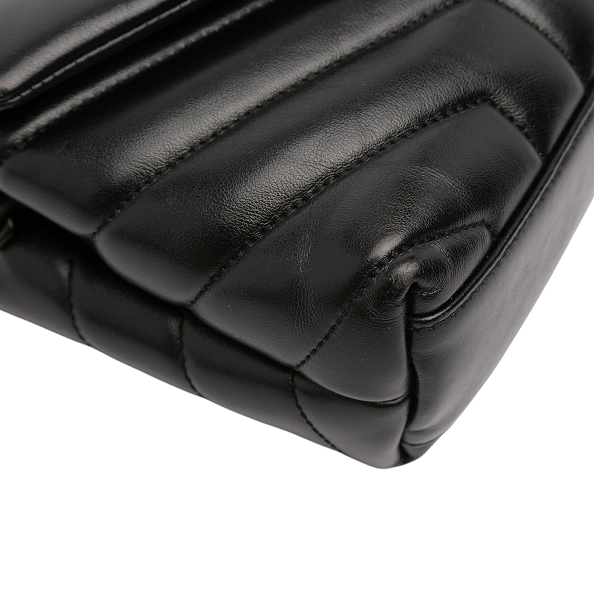 A Loulou Toy é um clássico da Saint Laurent que une elegância e versatilidade em um design atemporal. Confeccionada em couro macio acolchoado com costura em chevron, ela carrega o icônico monograma YSL em metal tonal na aba frontal, símbolo máximo da sofisticação da maison francesa.